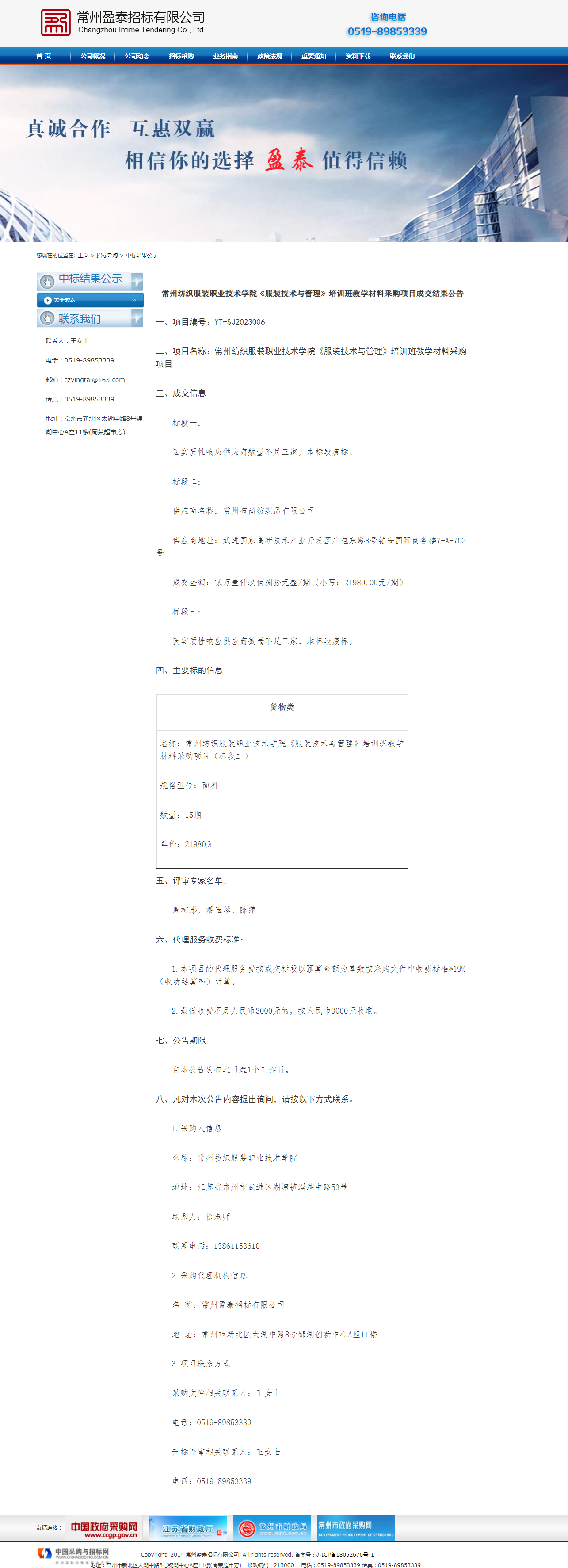 【成交公告】《服装技术与管理》培训班教学材料采购项目成交结果公告