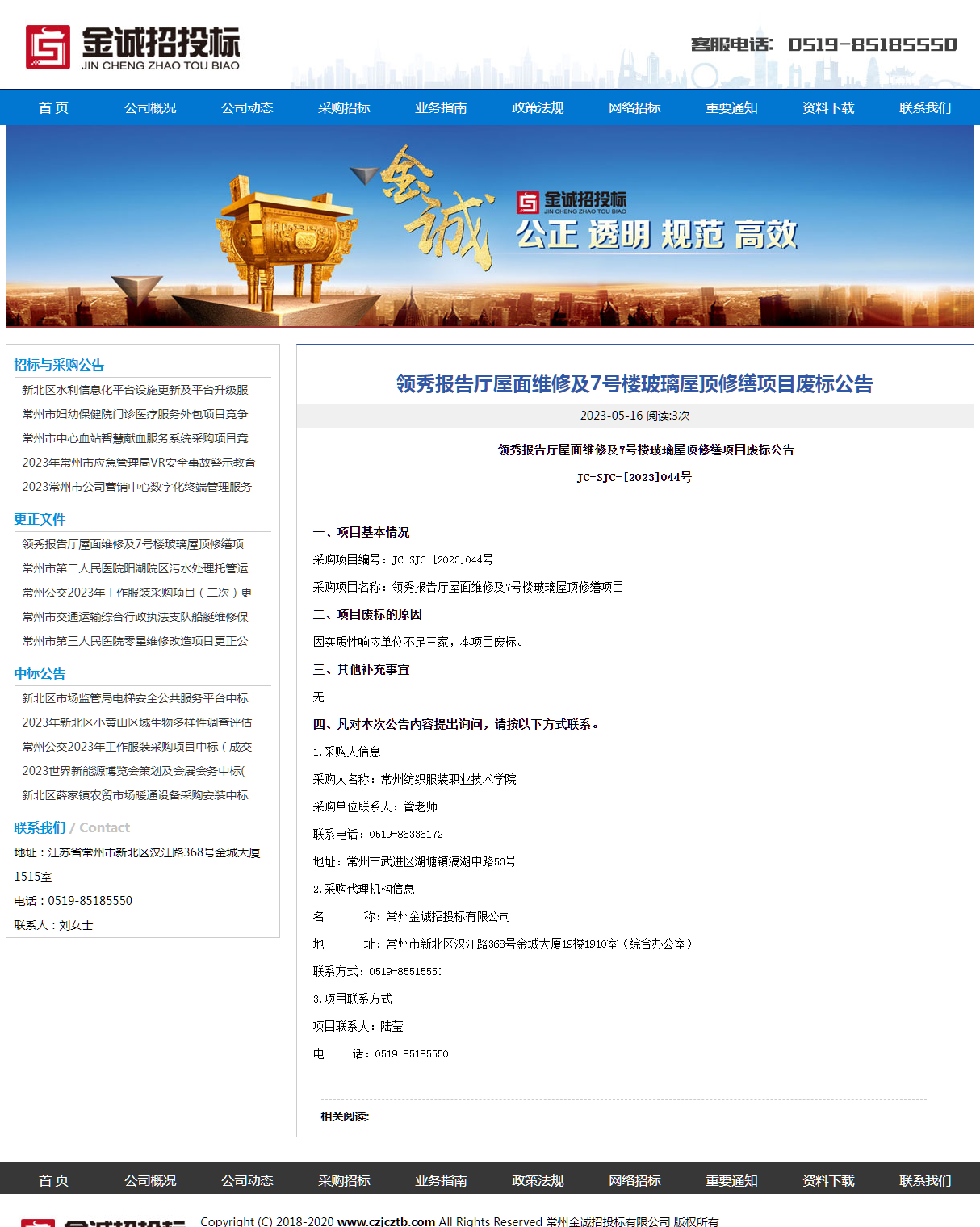 【废标公告】领秀报告厅屋面维修及7号楼玻璃屋顶修缮项目废标公告