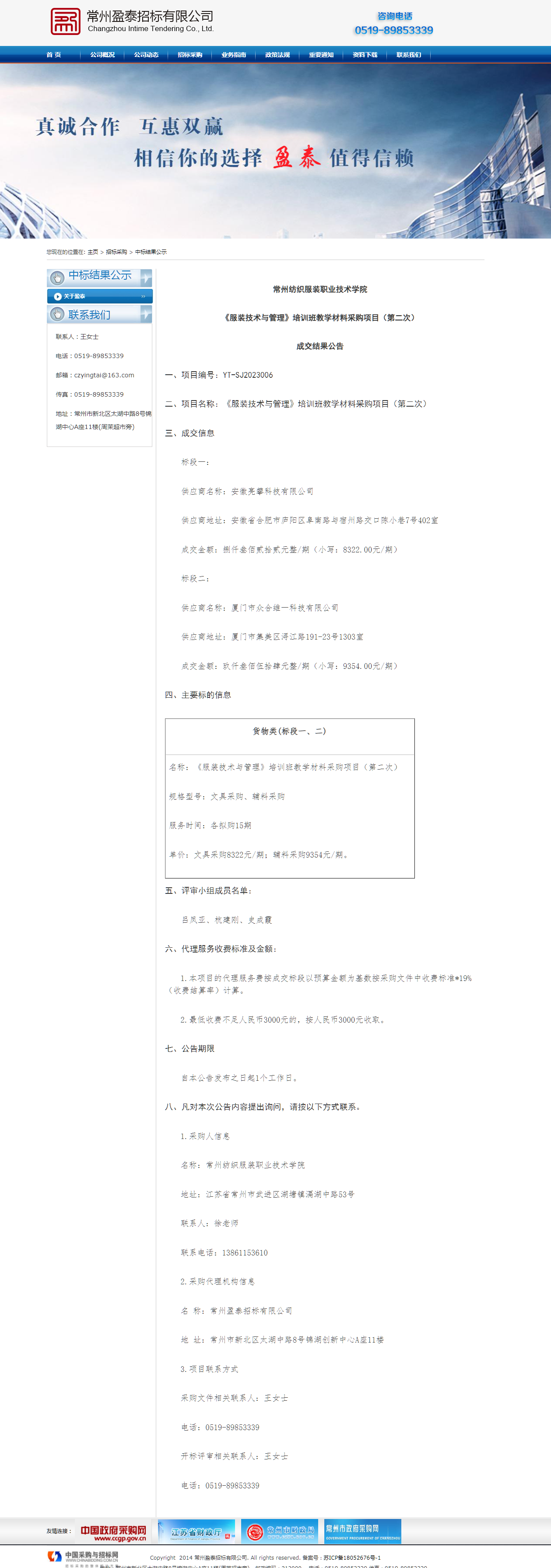 【成交公告】《服装技术与管理》培训班教学材料采购项目(第二次)成交结果公告