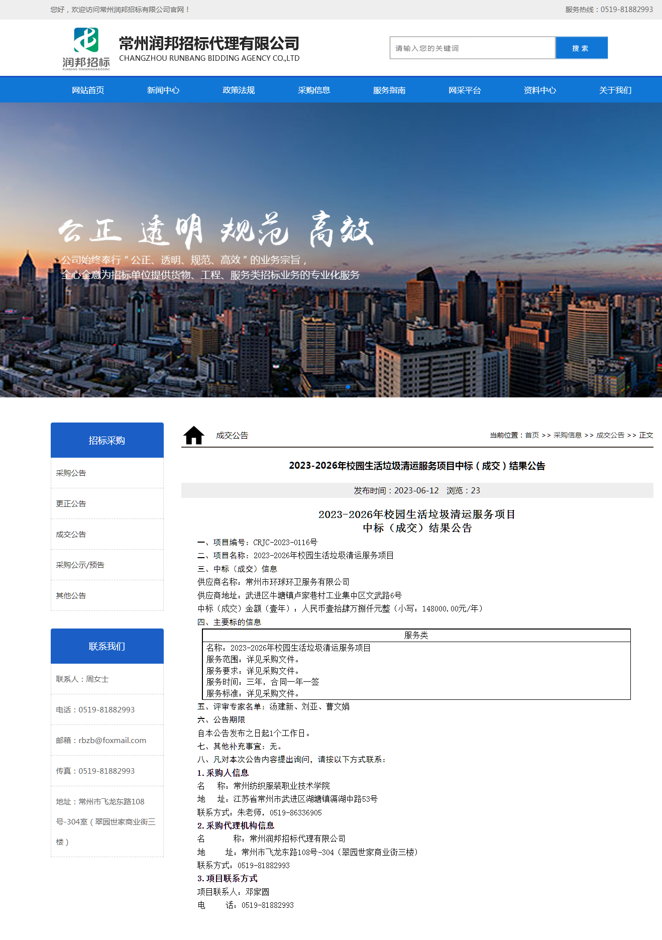 【成交公告】2023-2026年校园生活垃圾清运服务项目成交结果公告