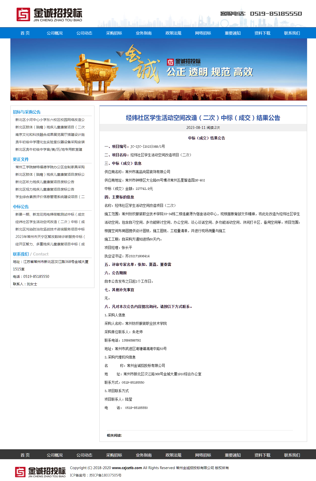 【成交公告】经纬社区学生活动空间改造项目成交结果公告