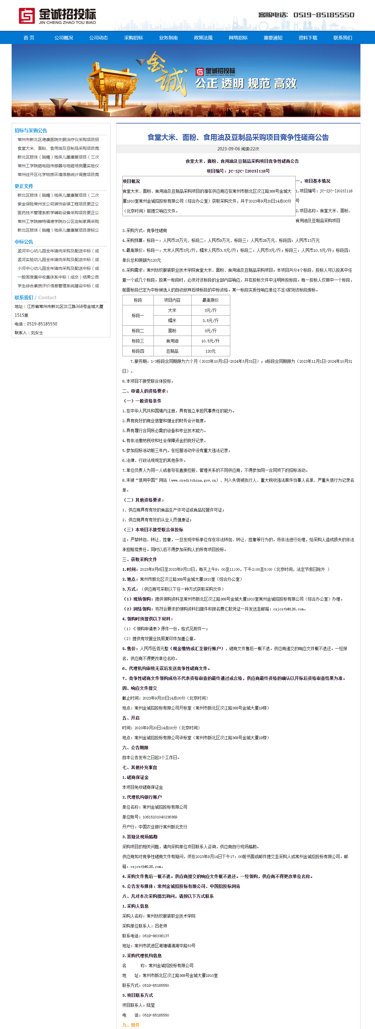 【采购公告】食堂大米、面粉、食用油及豆制品采购项目竞争性磋商公告
