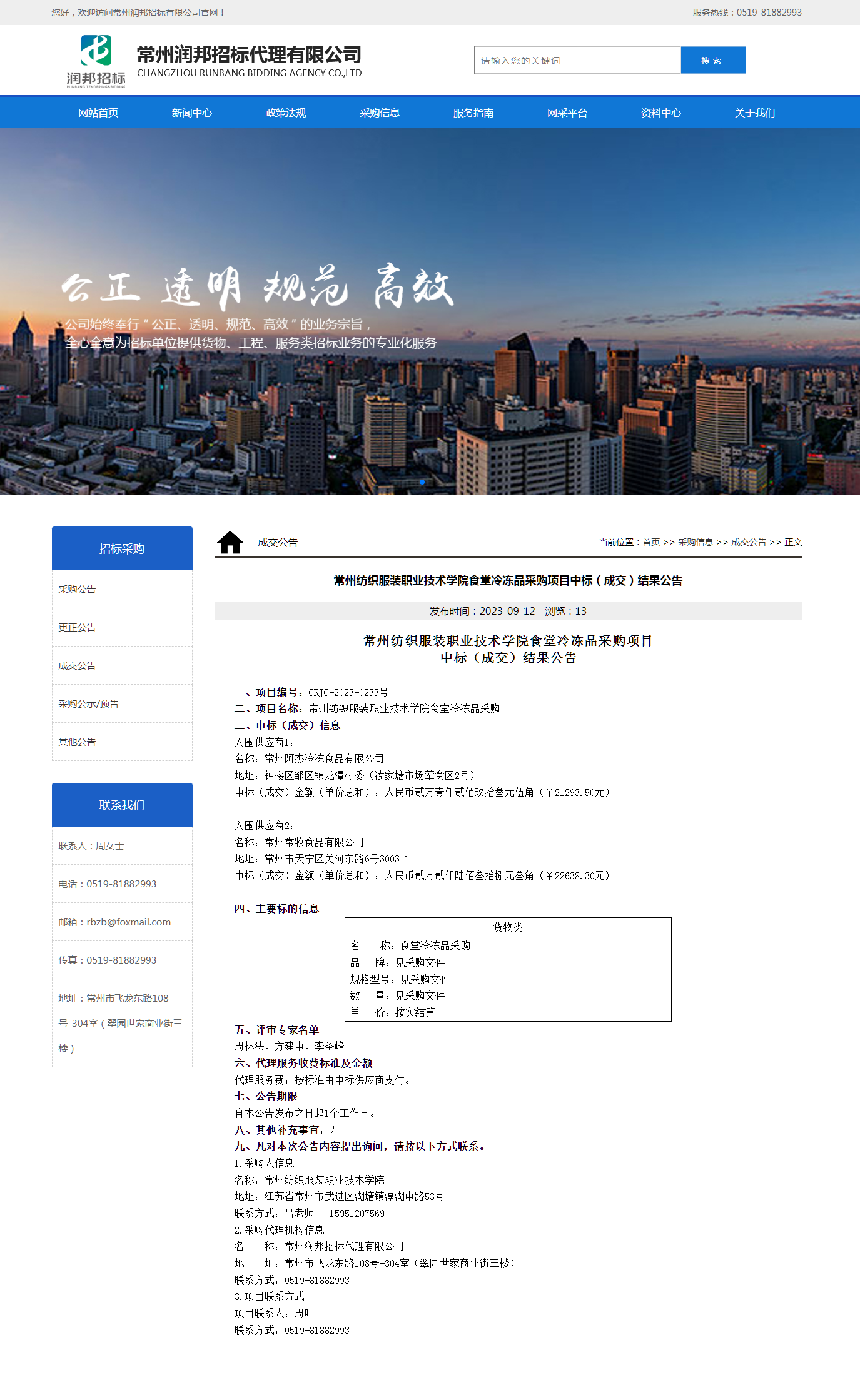 【成交公告】食堂冷冻品采购项目成交结果公告