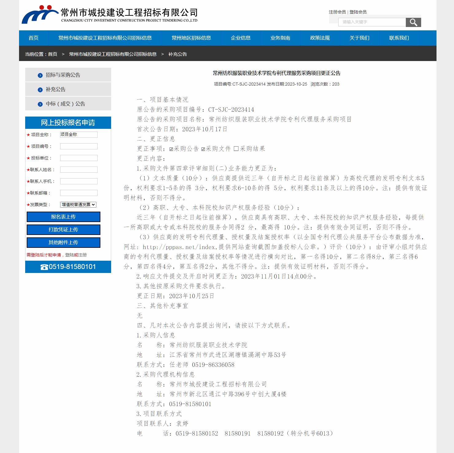【更正公告】专利代理服务采购项目更正公告