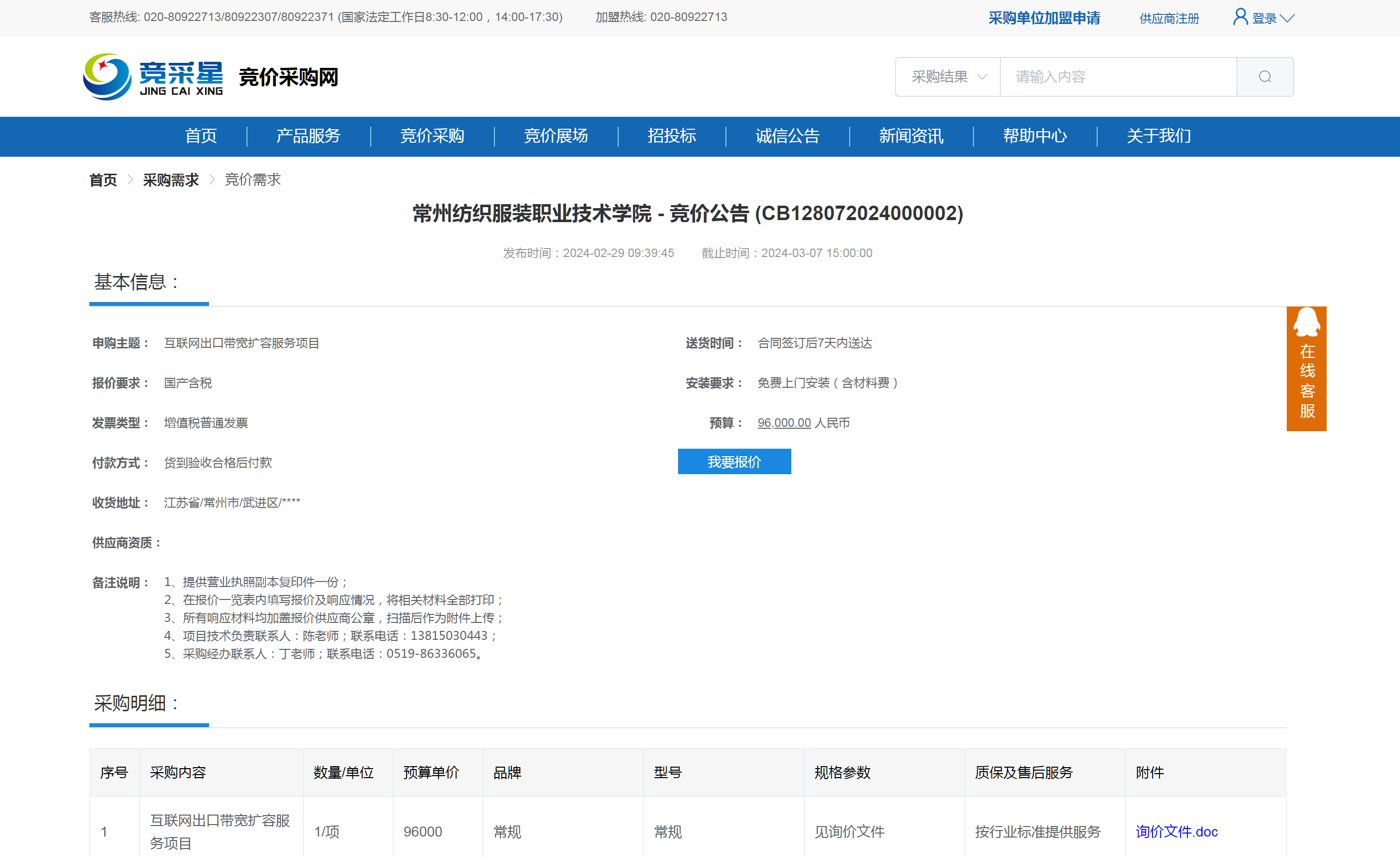 【采购公告】互联网出口带宽扩容服务项目询价公告