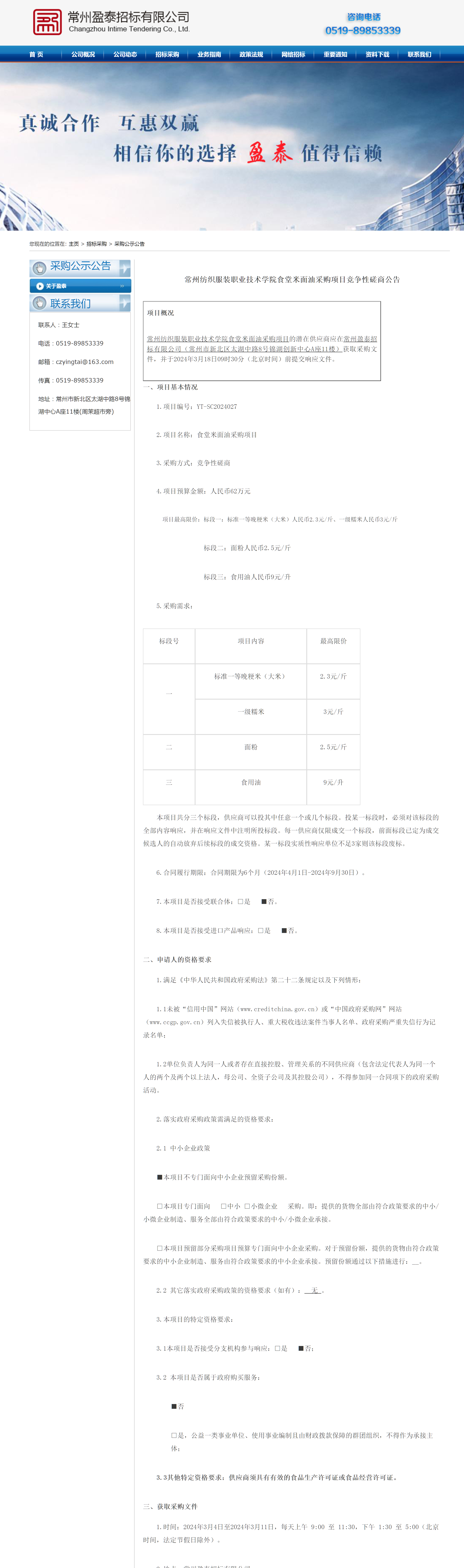 【采购公告】食堂米面油采购项目竞争性磋商公告