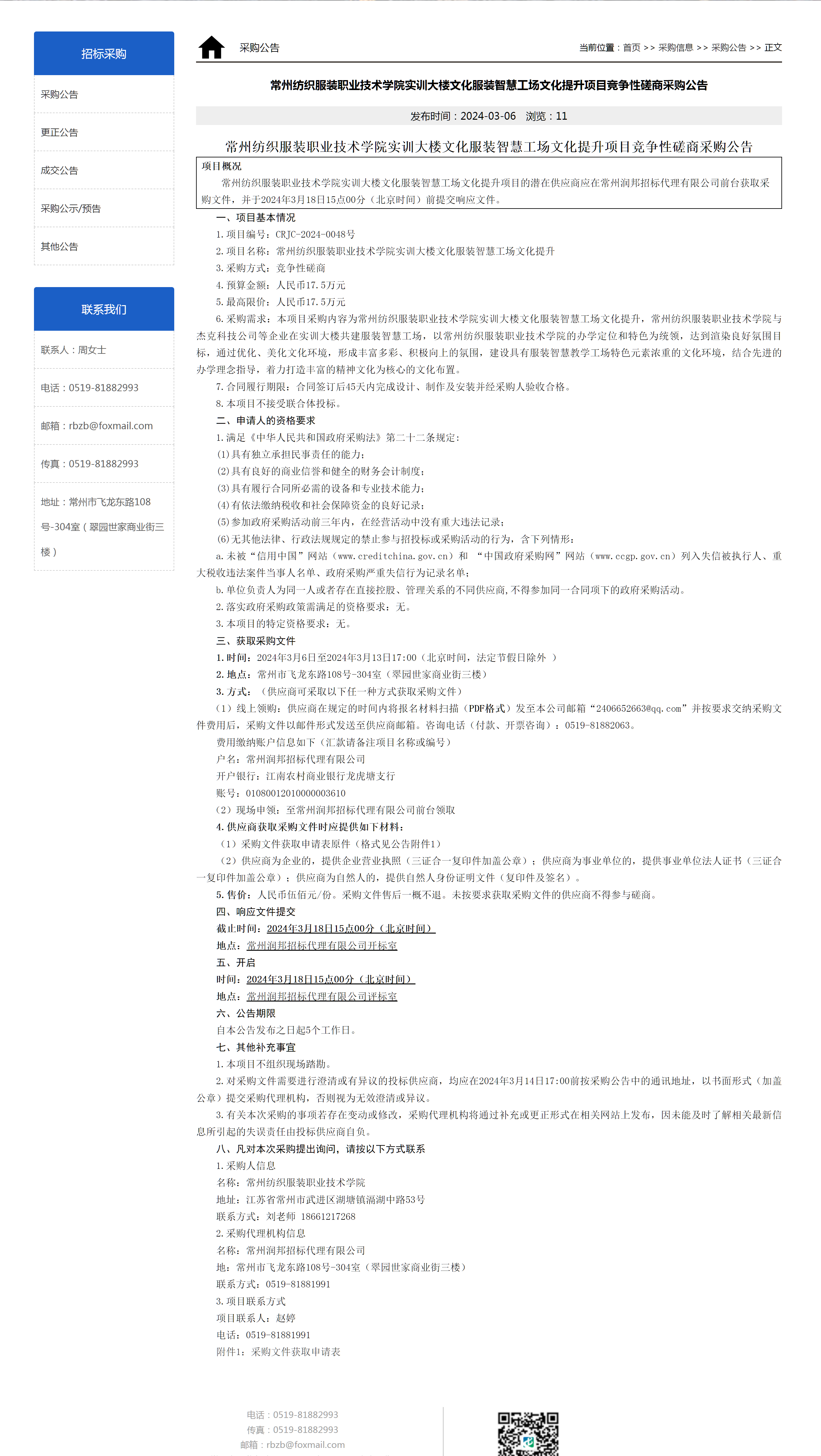 【采购公告】实训大楼文化服装智慧工场文化提升项目竞争性磋商采购公告