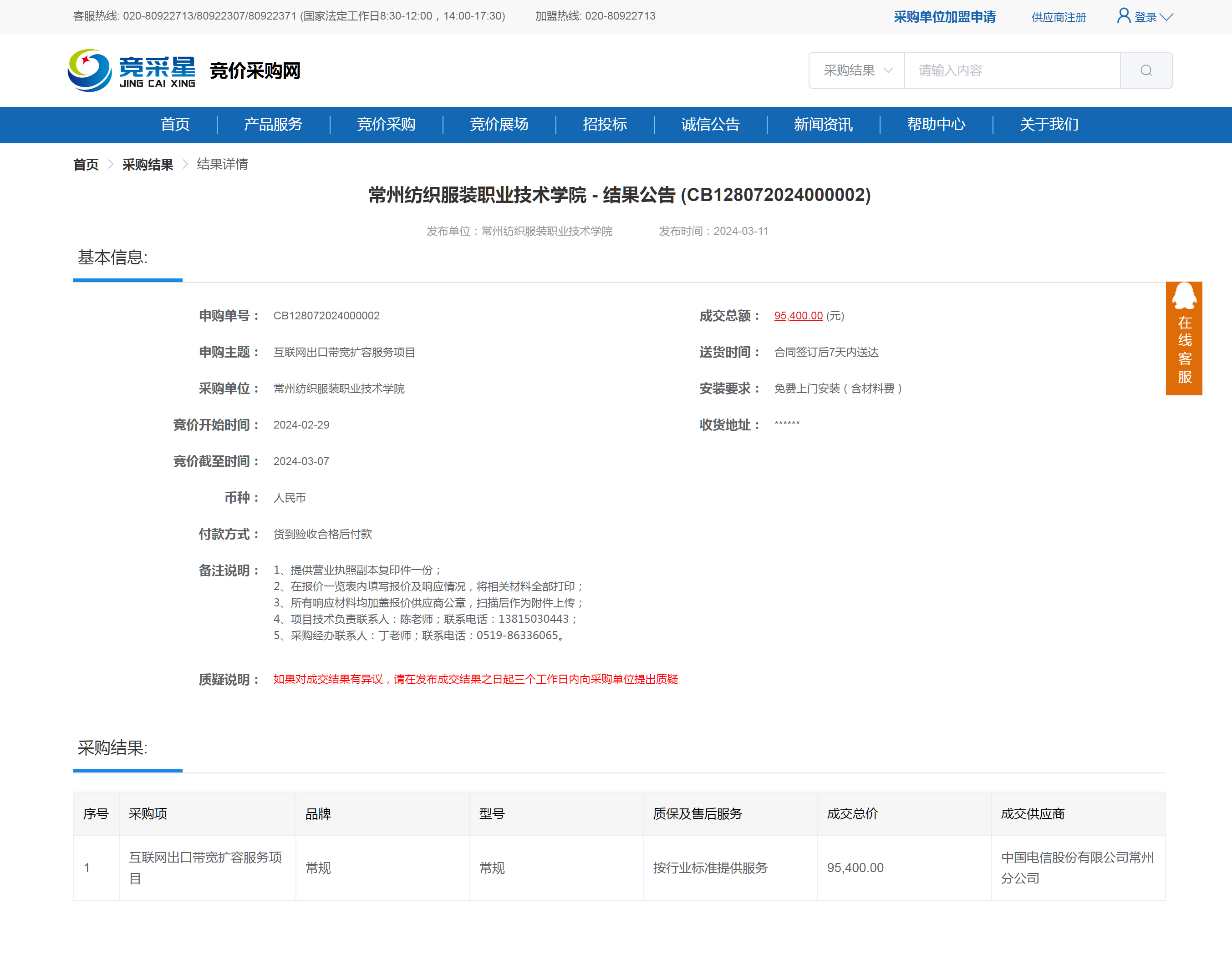 【成交公告】互联网出口带宽扩容服务项目成交公告
