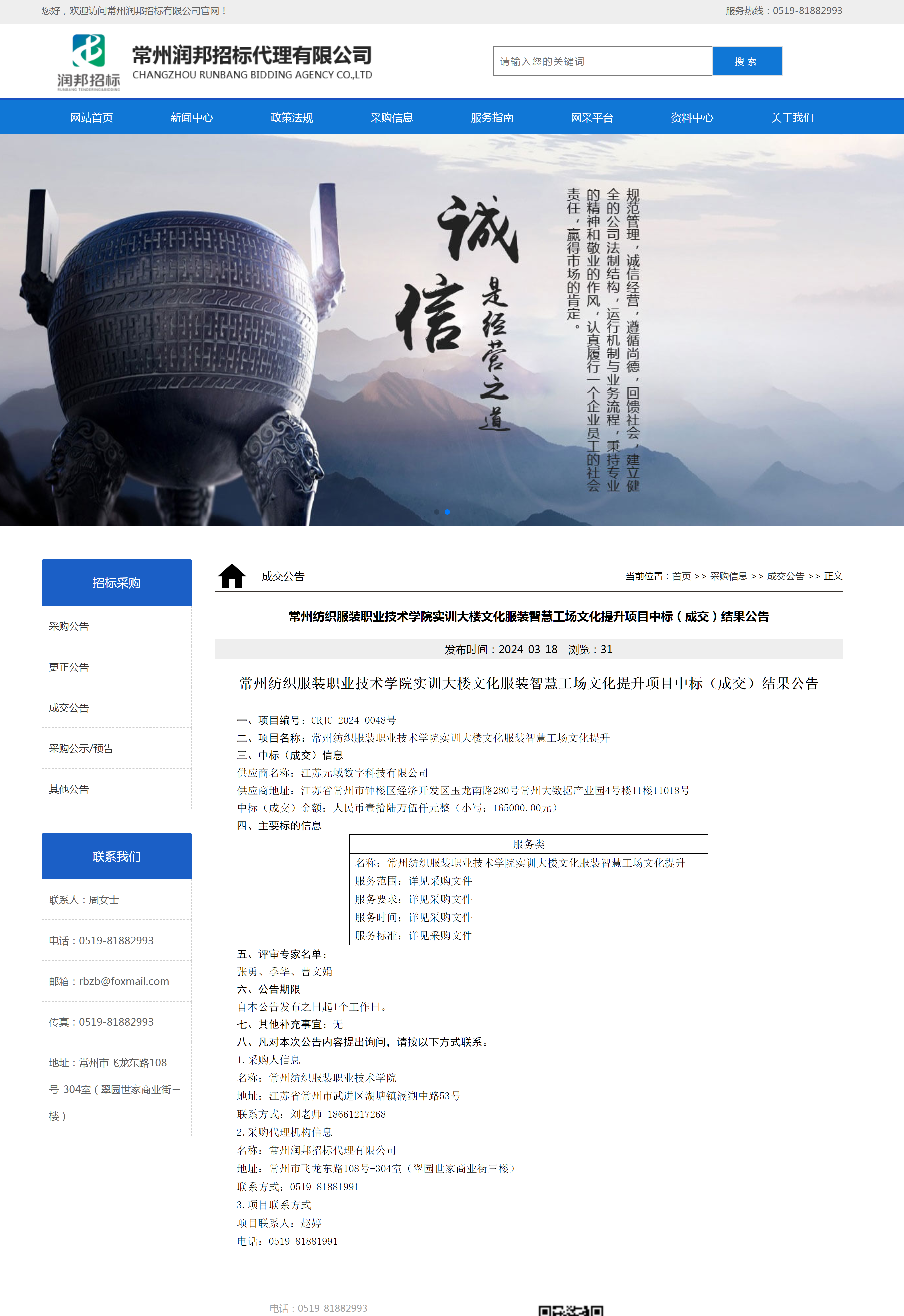 【成交公告】实训大楼文化服装智慧工场文化提升项目成交结果公告