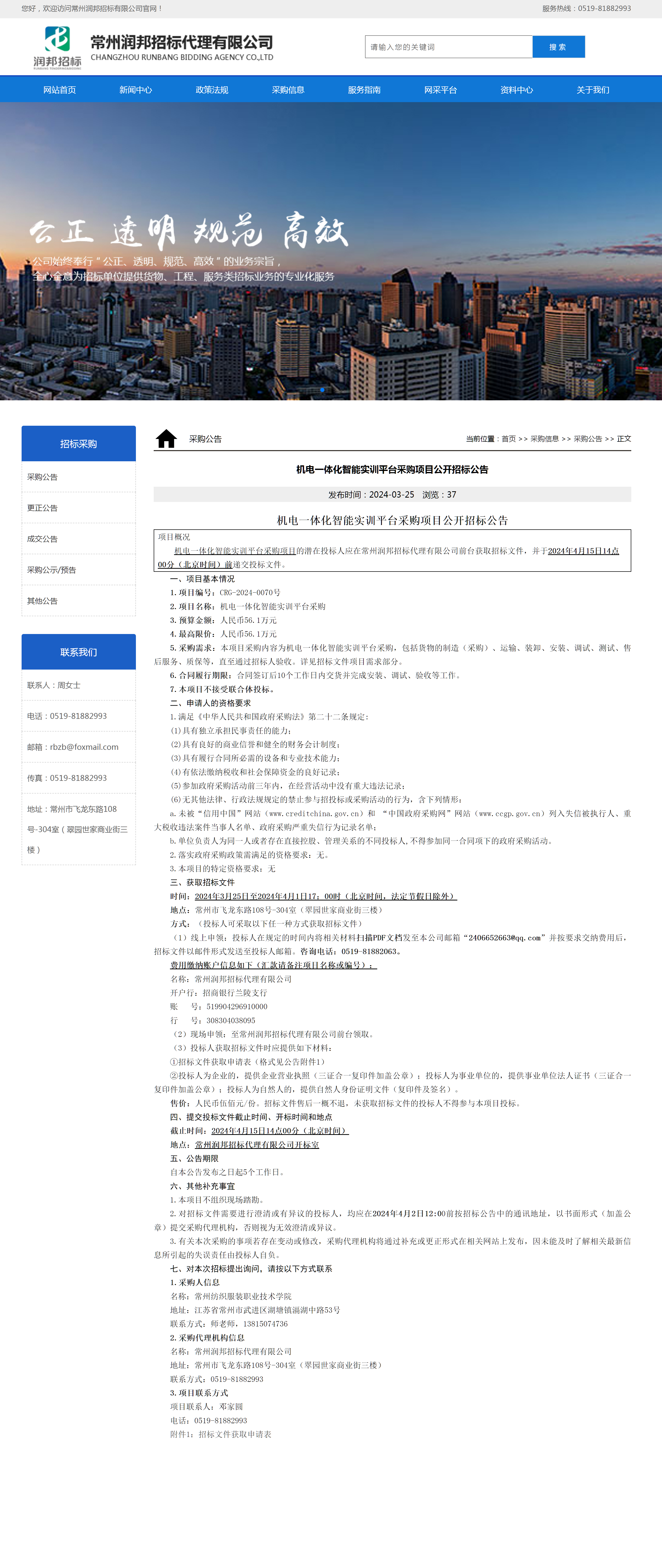 【招标公告】机电一体化智能实训平台采购项目公开招标公告