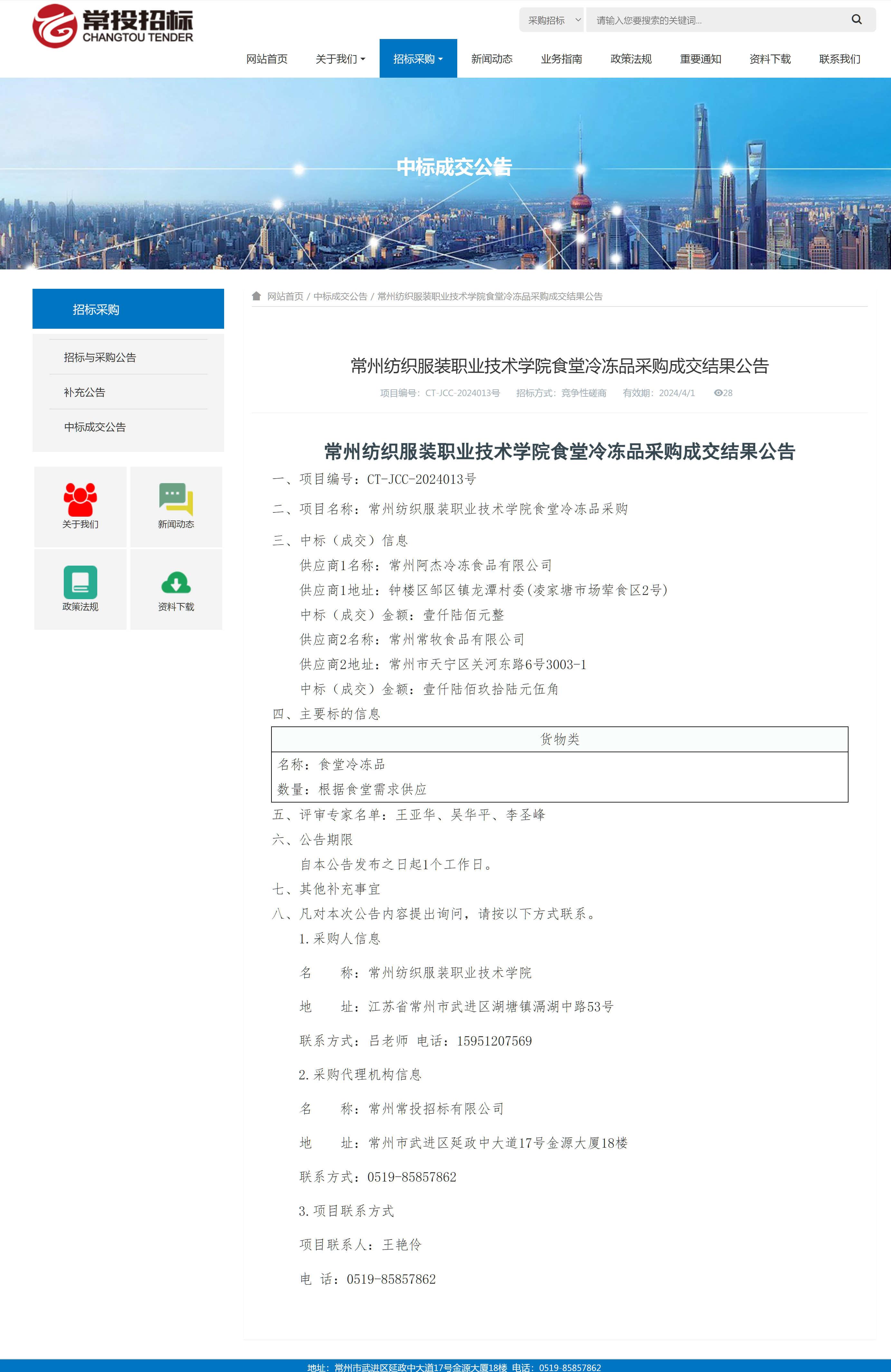 【成交公告】食堂冷冻品采购项目成交结果公告