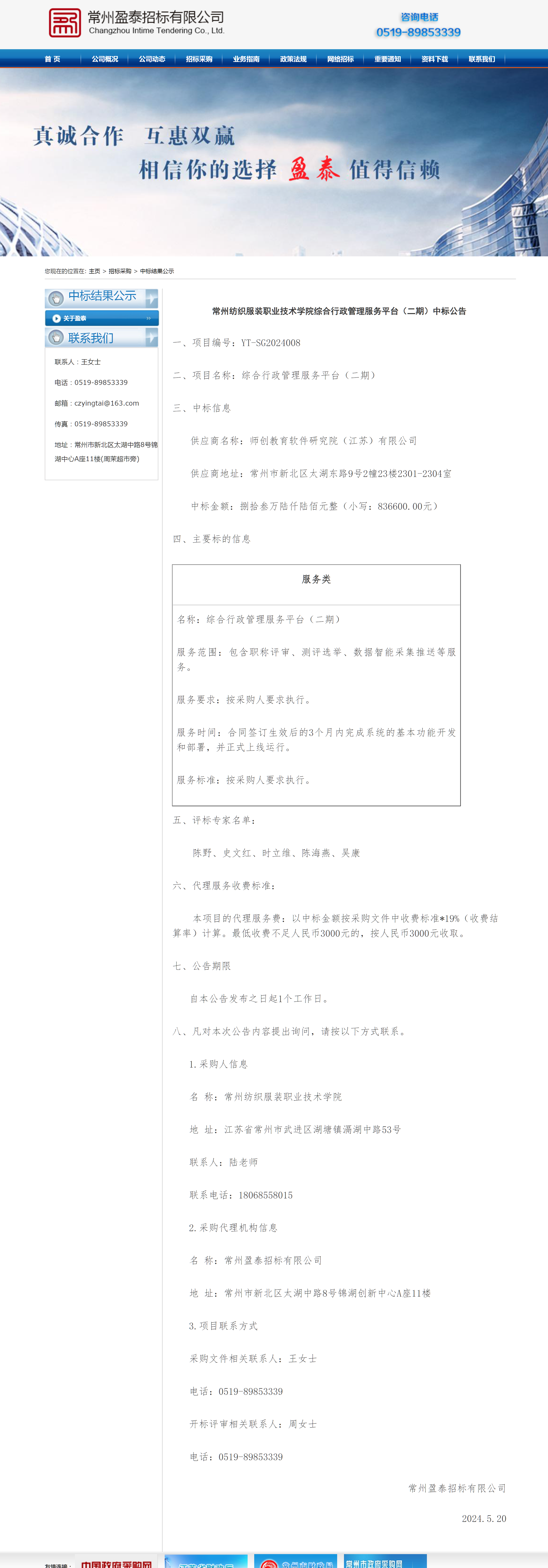 【中标公告】综合行政管理服务平台(二期)项目中标公告