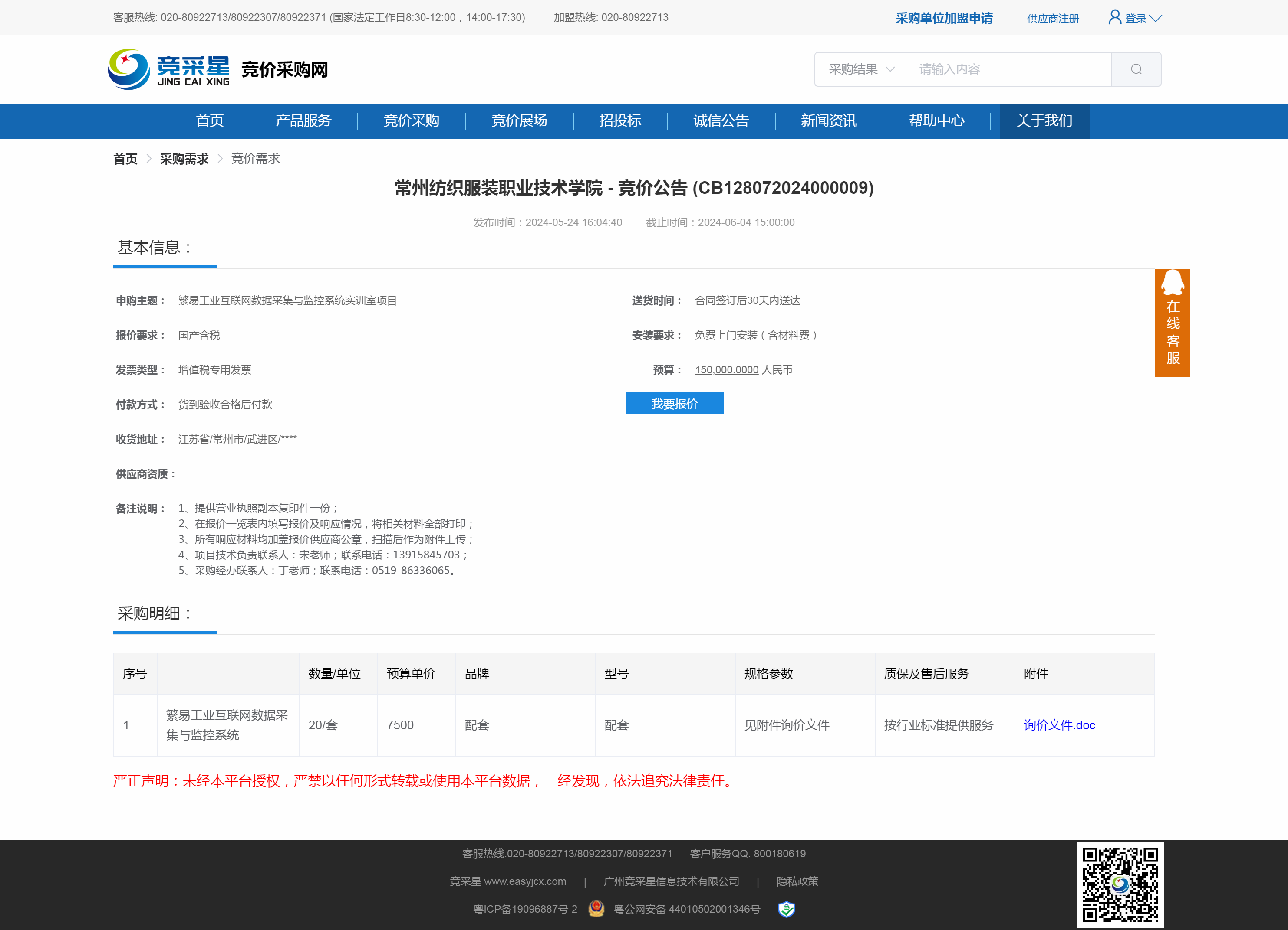 【采购公告】繁易工业互联网数据采集与监控系统实训室项目询价公告