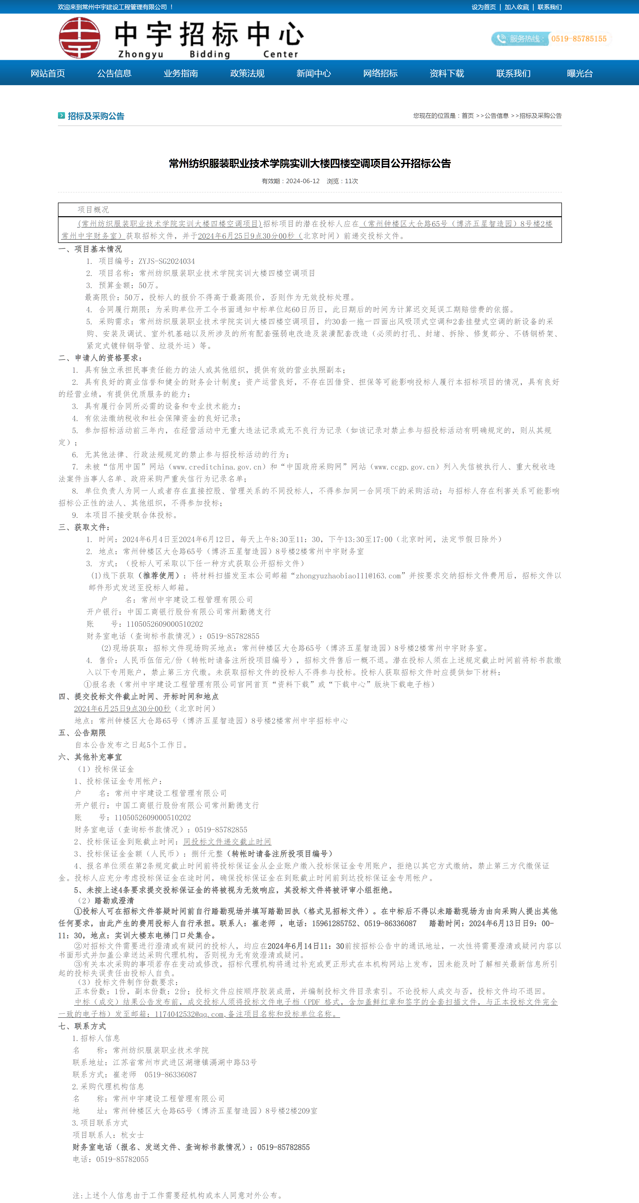 【招标公告】实训大楼四楼空调项目公开招标公告