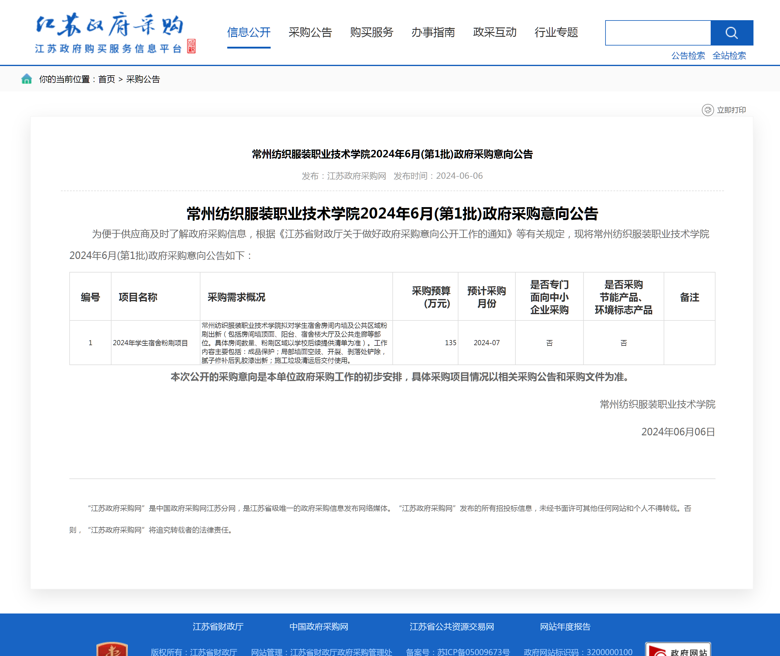 【政府采购意向公告】2024年学生宿舍粉刷项目政府采购意向公告