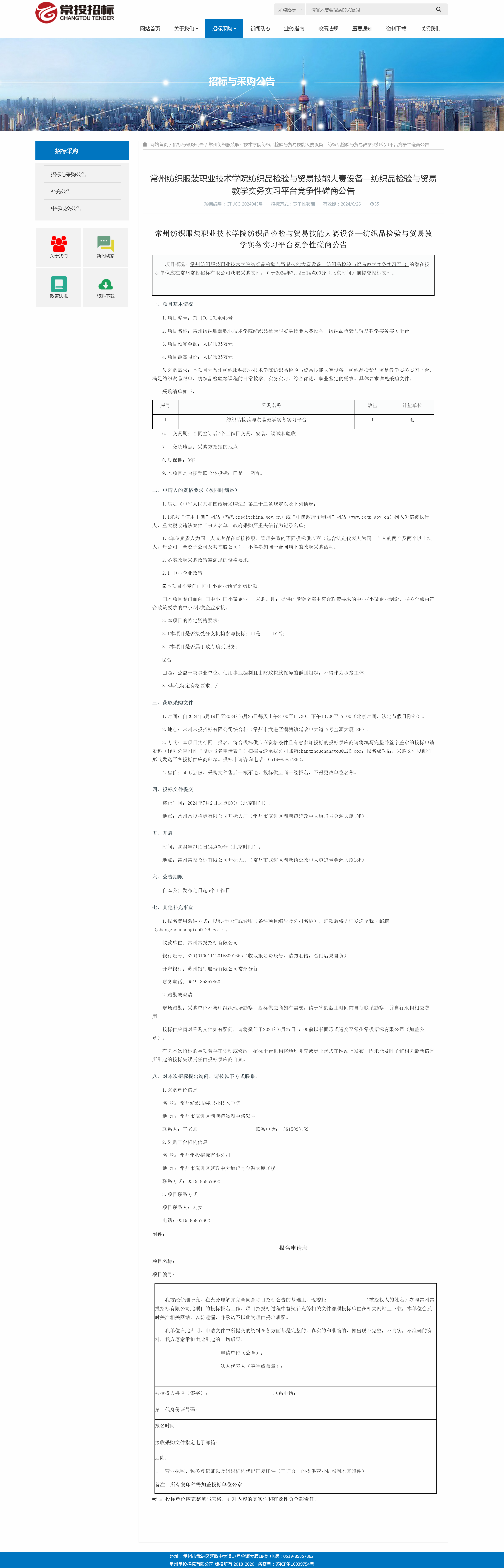 【采购公告】纺织品检验与贸易教学实务实习平台竞争性磋商公告