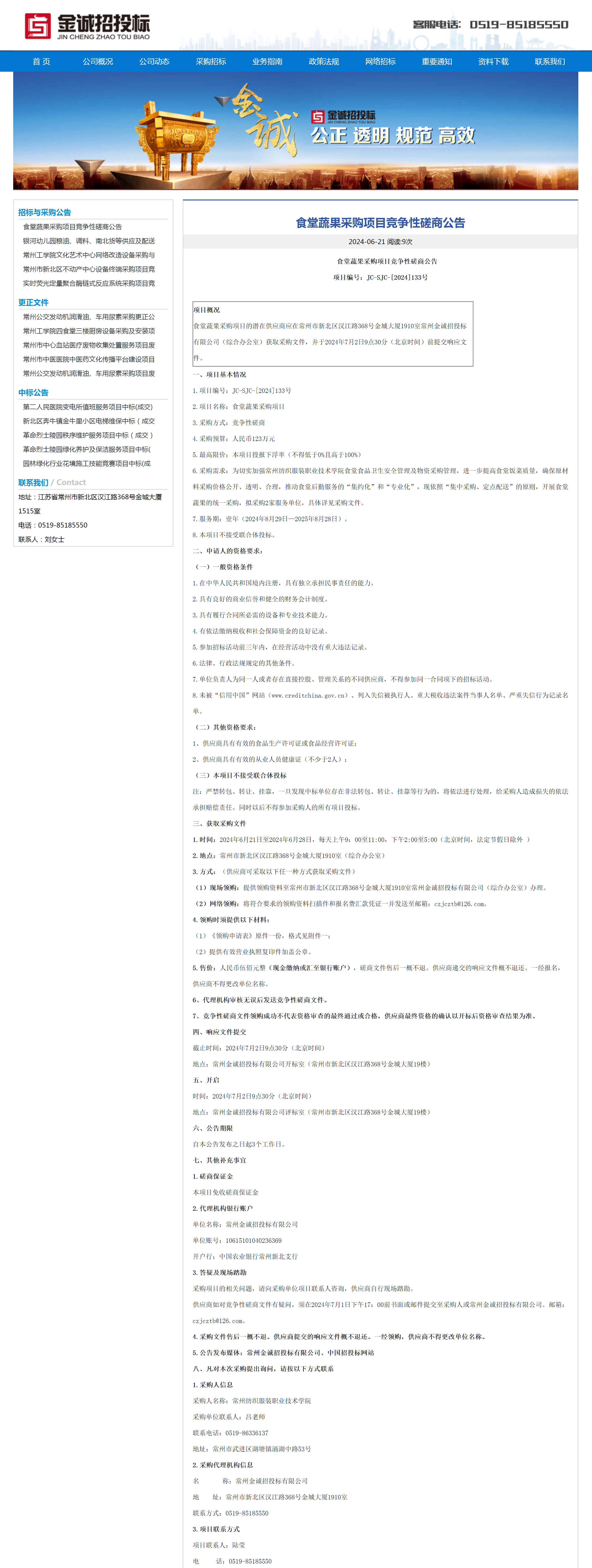 【采购公告】食堂蔬果采购项目竞争性磋商公告