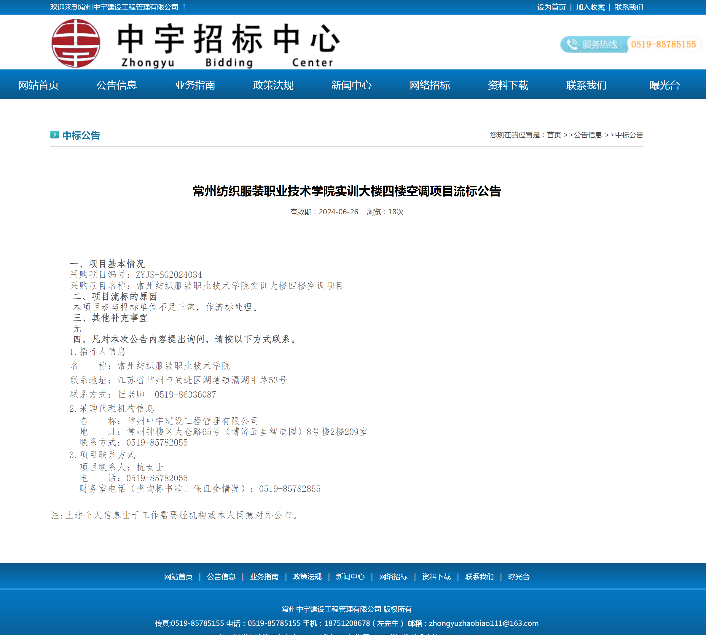 【流标公告】实训大楼四楼空调项目流标公告