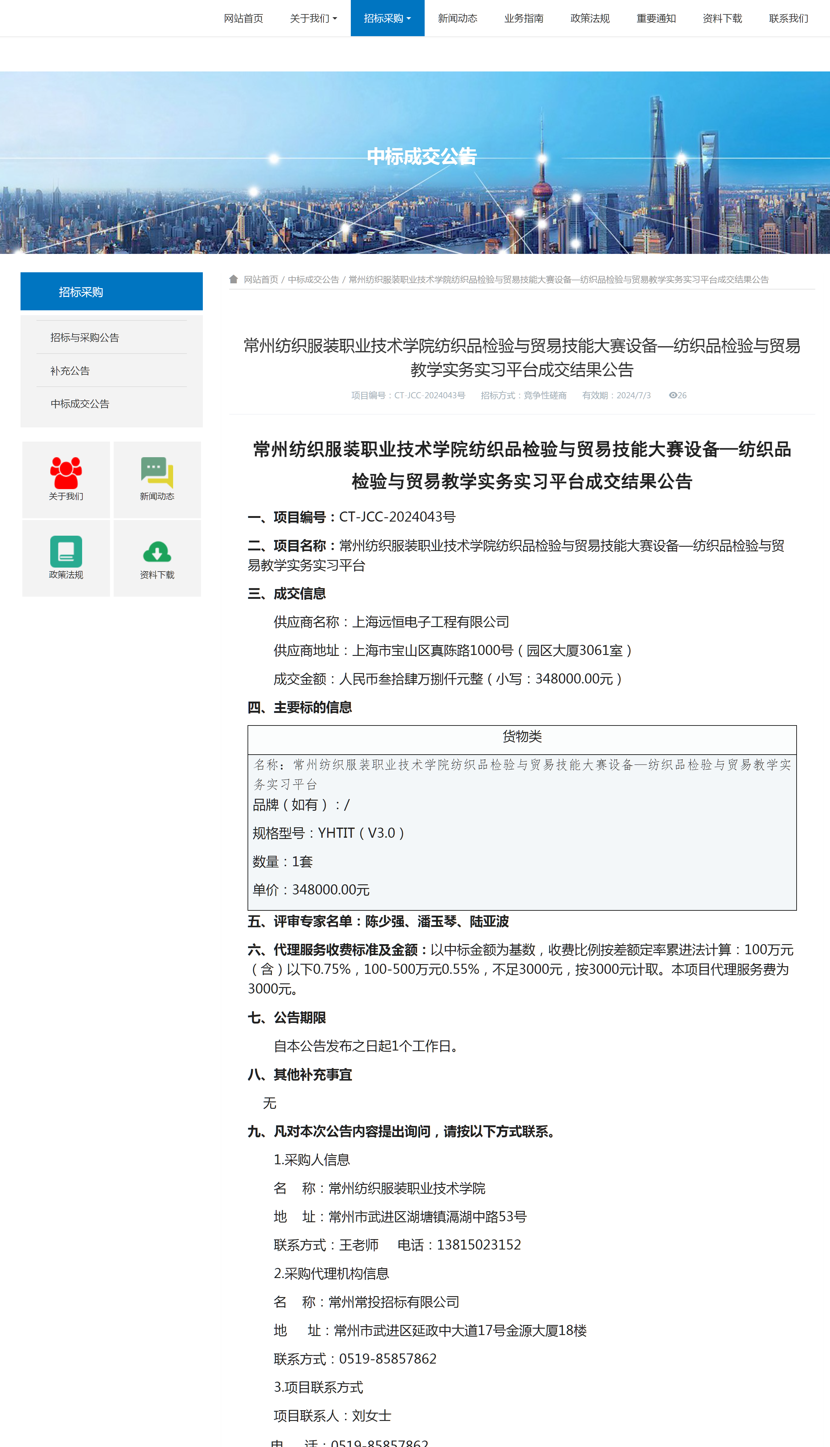 【成交公告】纺织品检验与贸易教学实务实习平台成交结果公告
