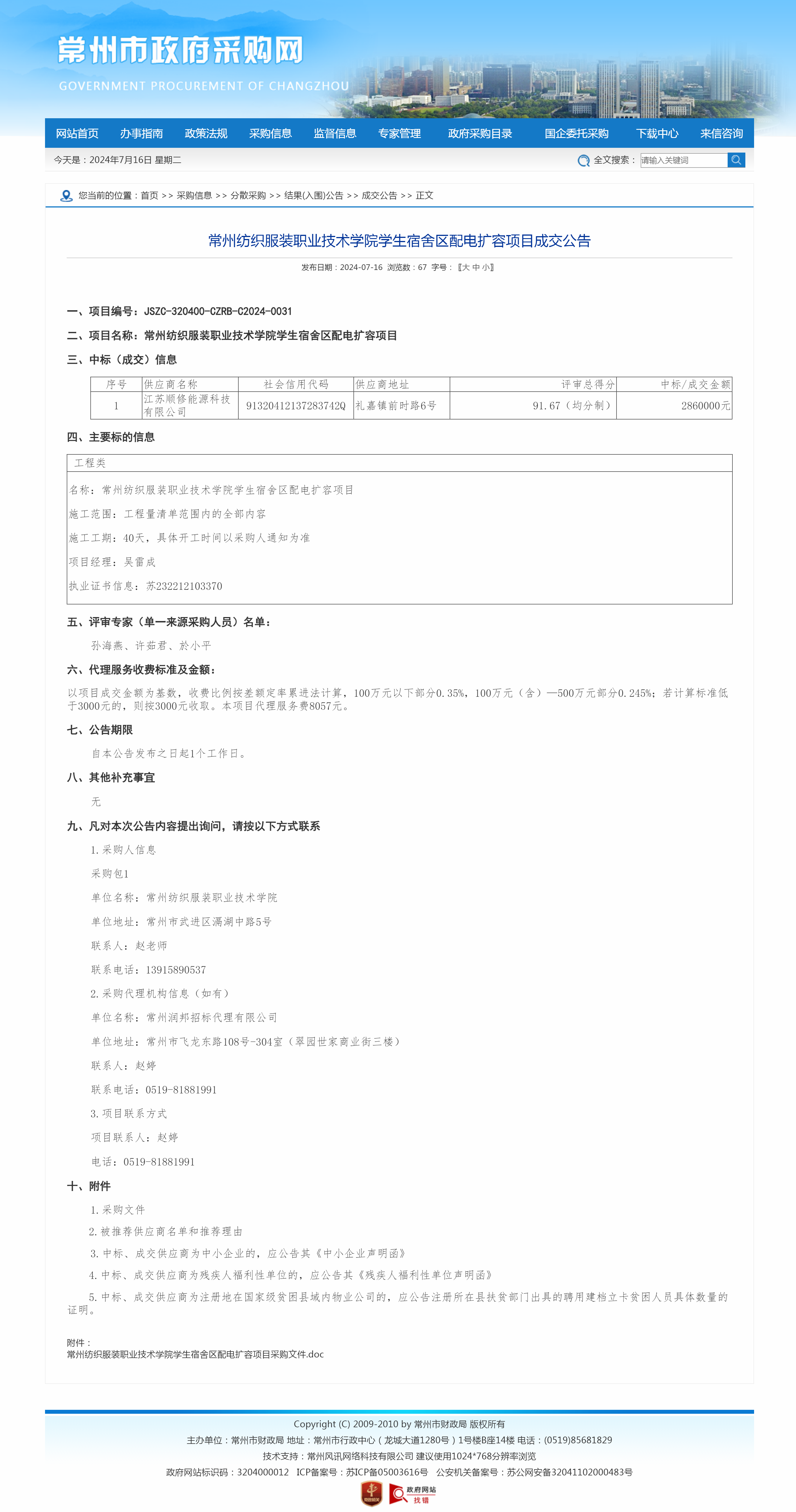 【成交公告】学生宿舍区配电扩容项目成交结果公告