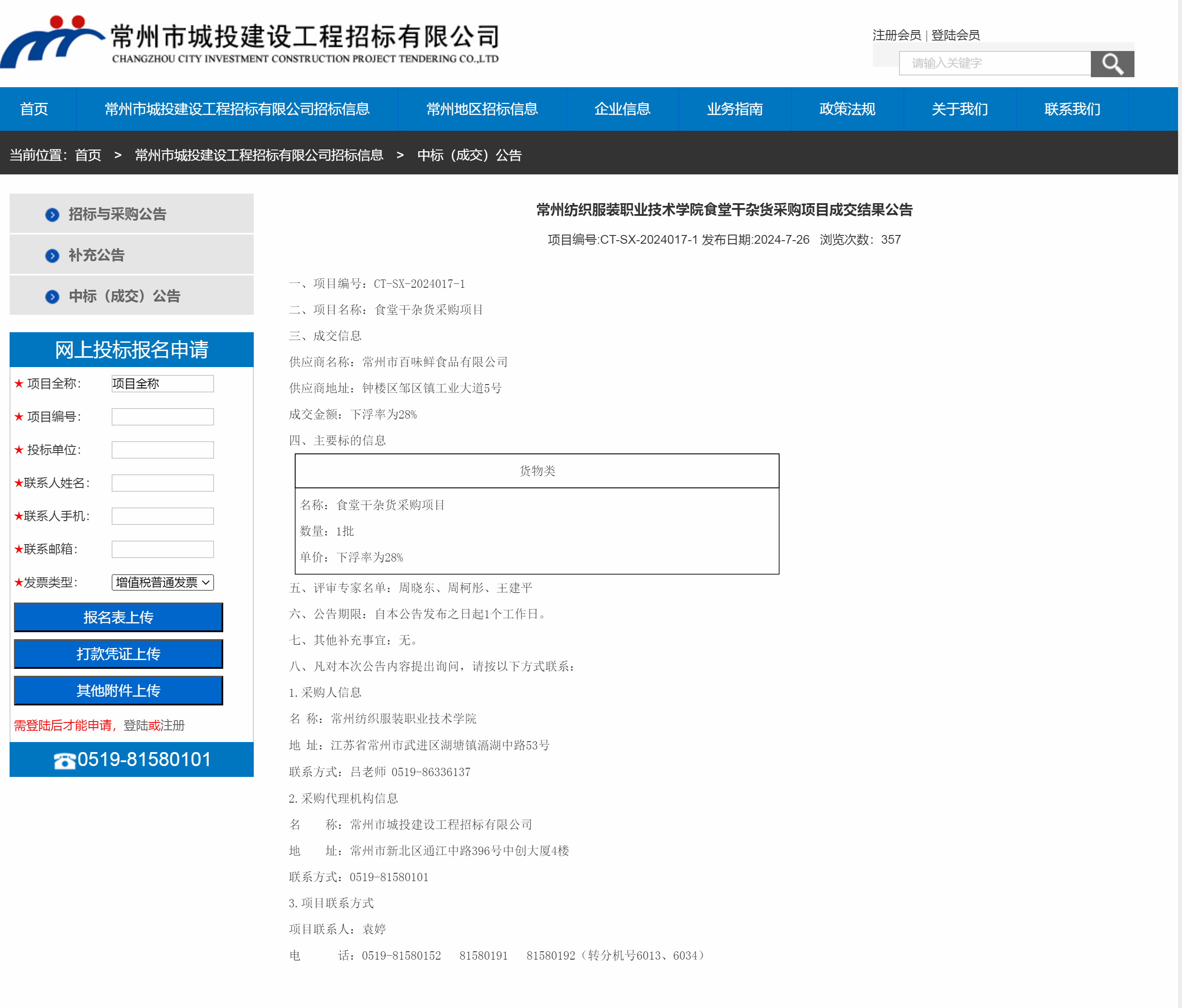 【成交公告】食堂干杂货采购项目成交结果公告(第二次)