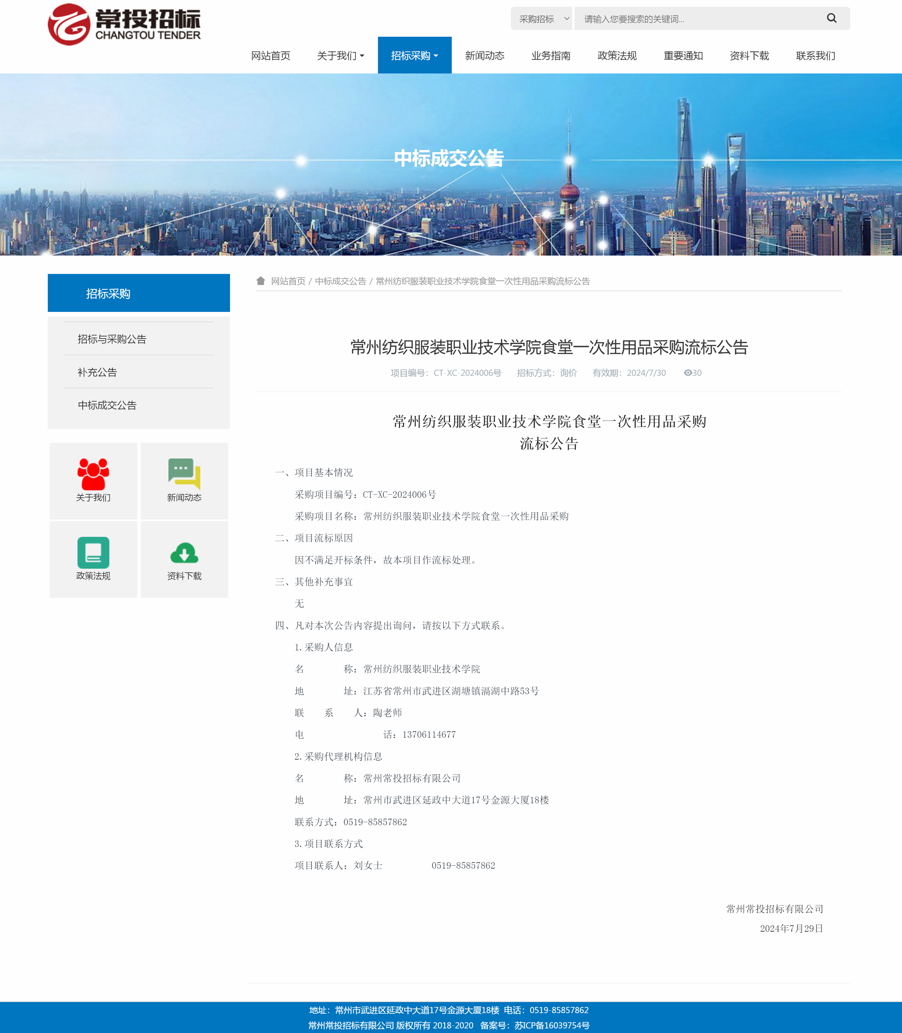 【流标公告】食堂一次性用品采购项目流标公告(第二次)