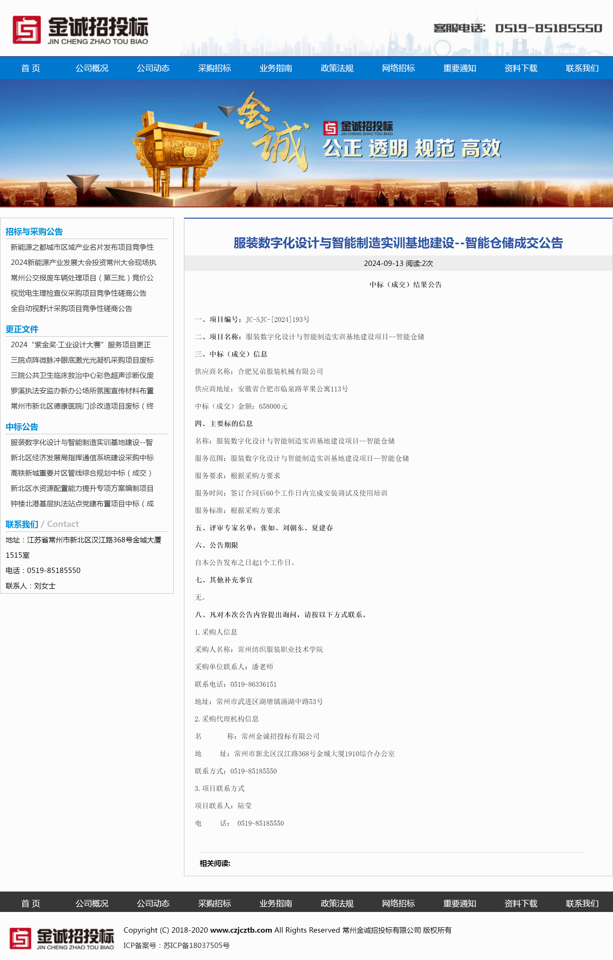 【成交公告】服装数字化设计与智能制造实训基地建设项目--智能仓储项目成交结果公告
