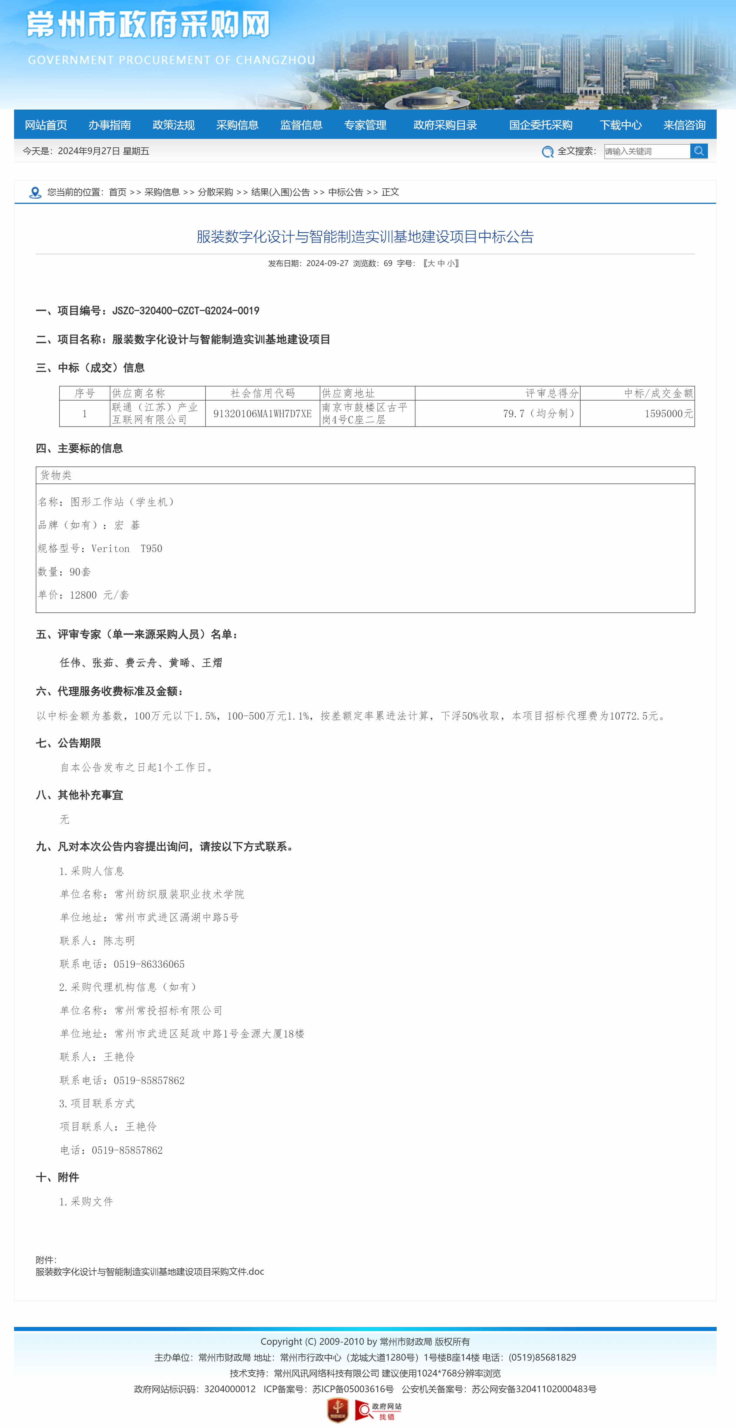 【中标公告】服装数字化设计与智能制造实训基地建设项目中标公告