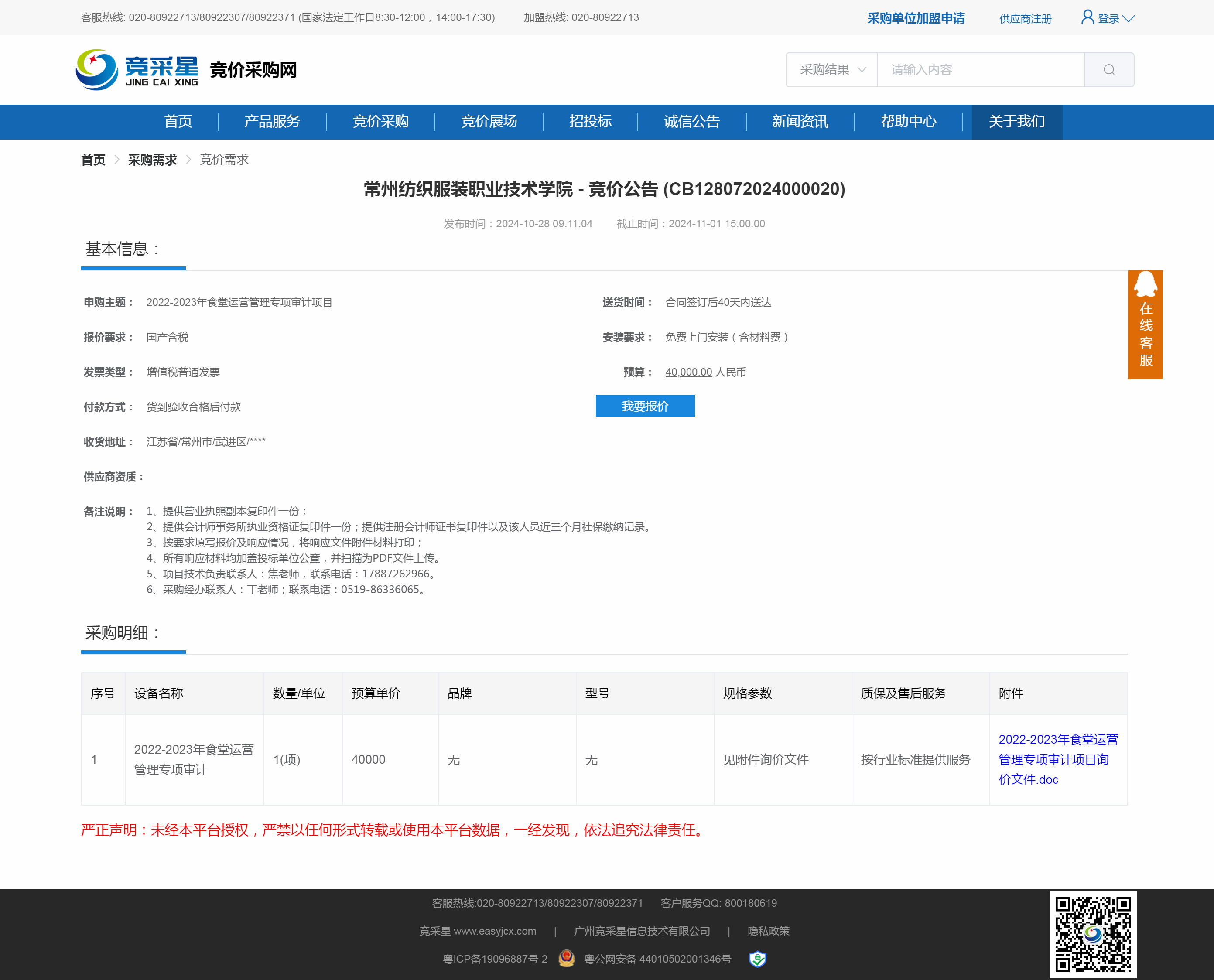 【采购公告】2022-2023年食堂运营管理专项审计项目询价公告