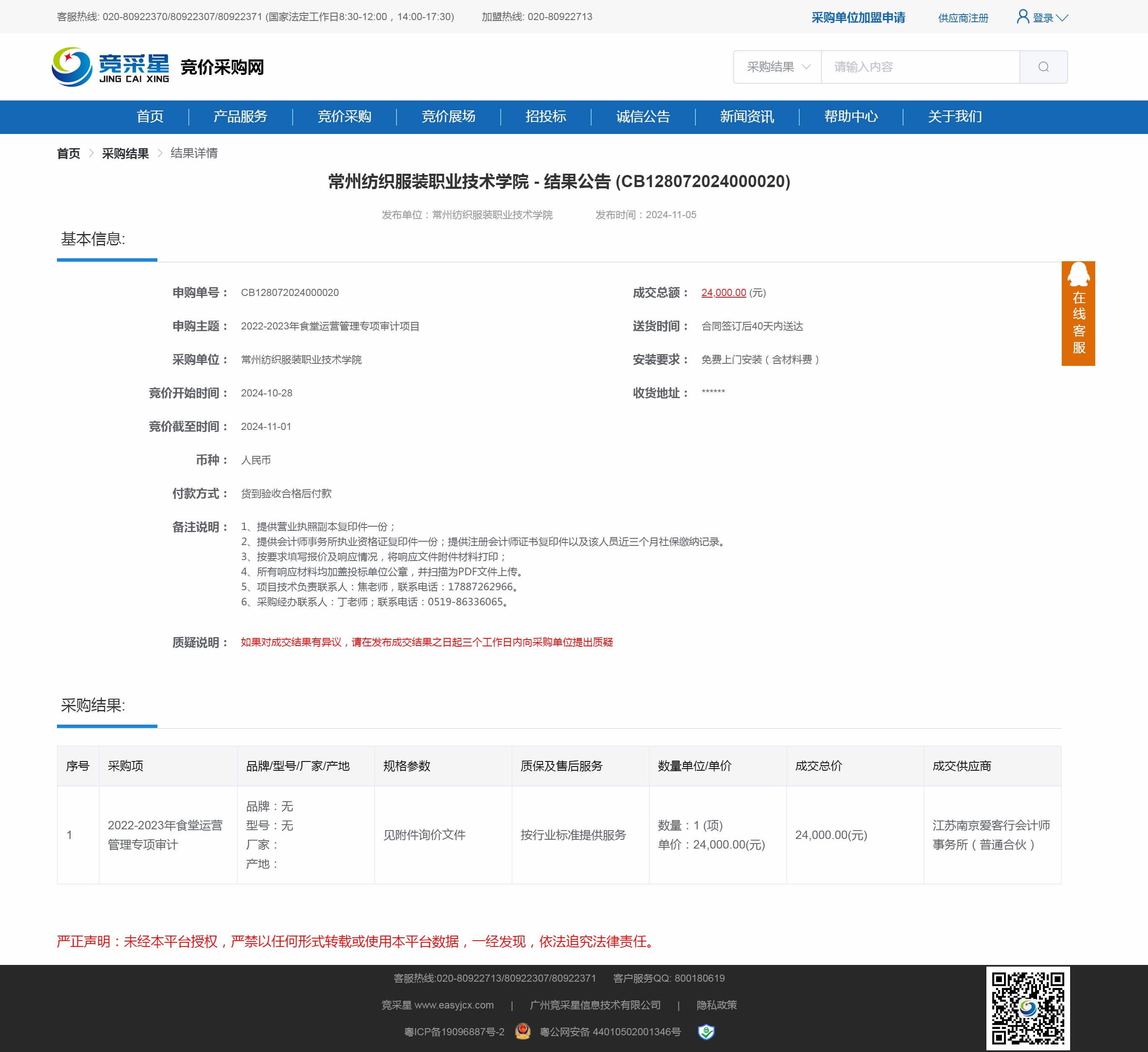 【成交公告】2022-2023年食堂运营管理专项审计项目成交公告