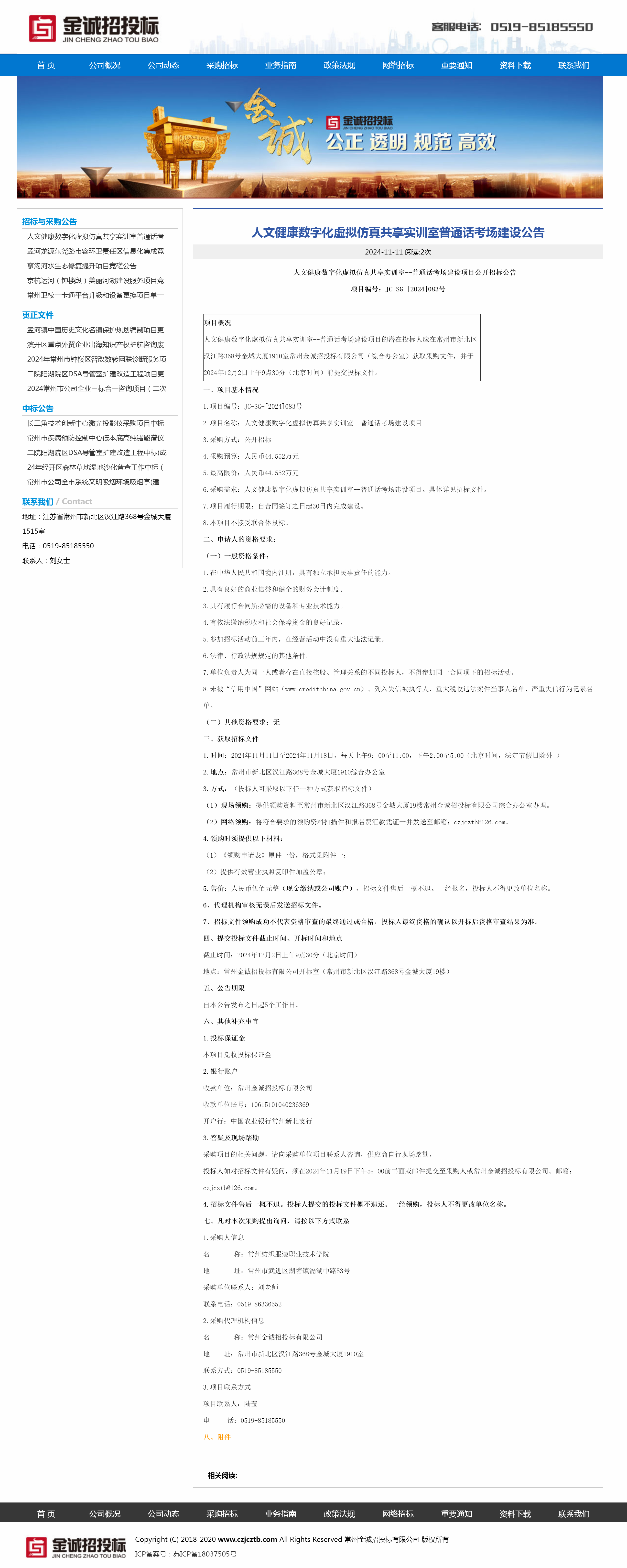 【招标公告】人文健康数字化虚拟仿真共享实训室--普通话考场建设项目公开招标公告