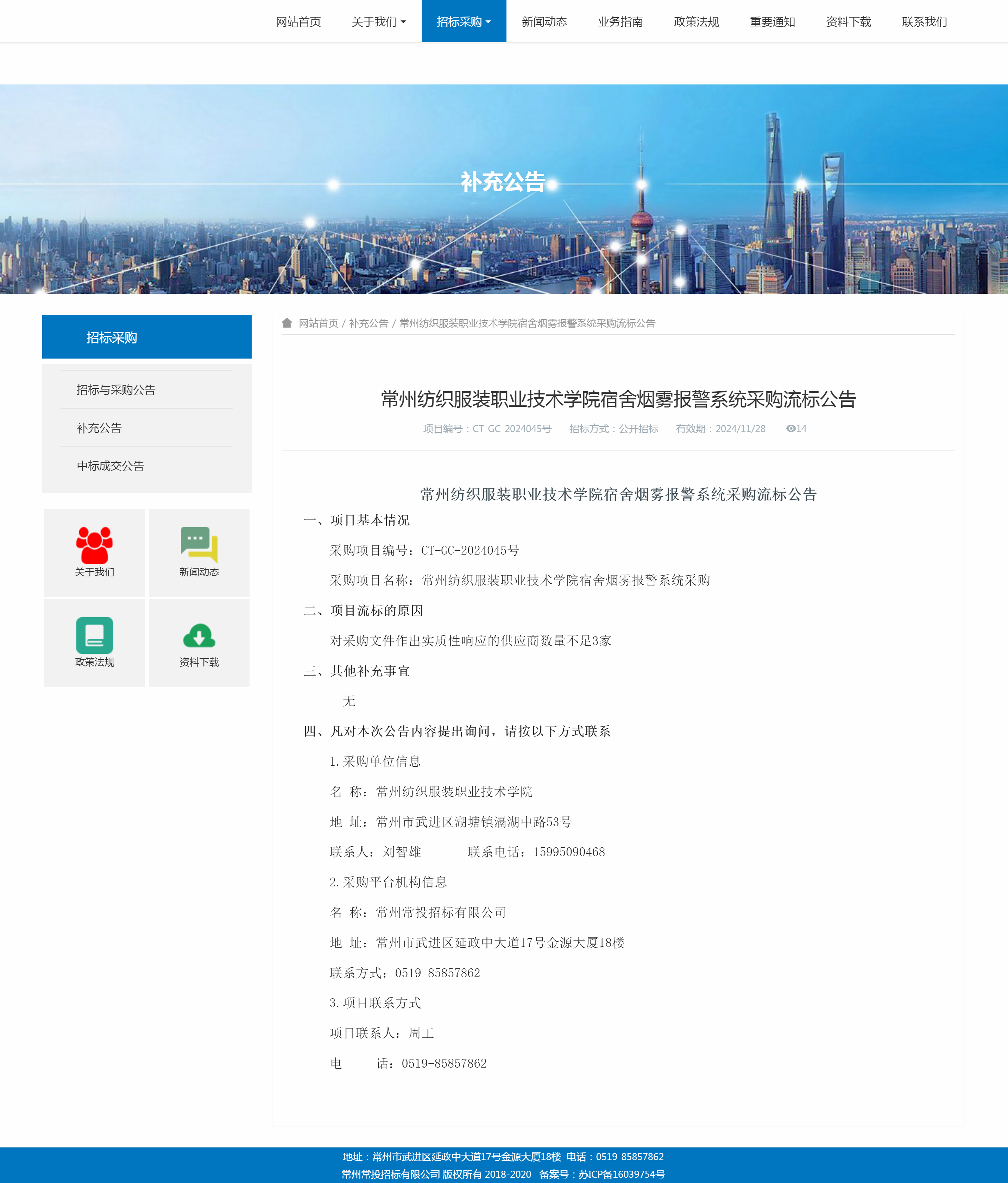 【流标公告】宿舍烟雾报警系统采购流标公告
