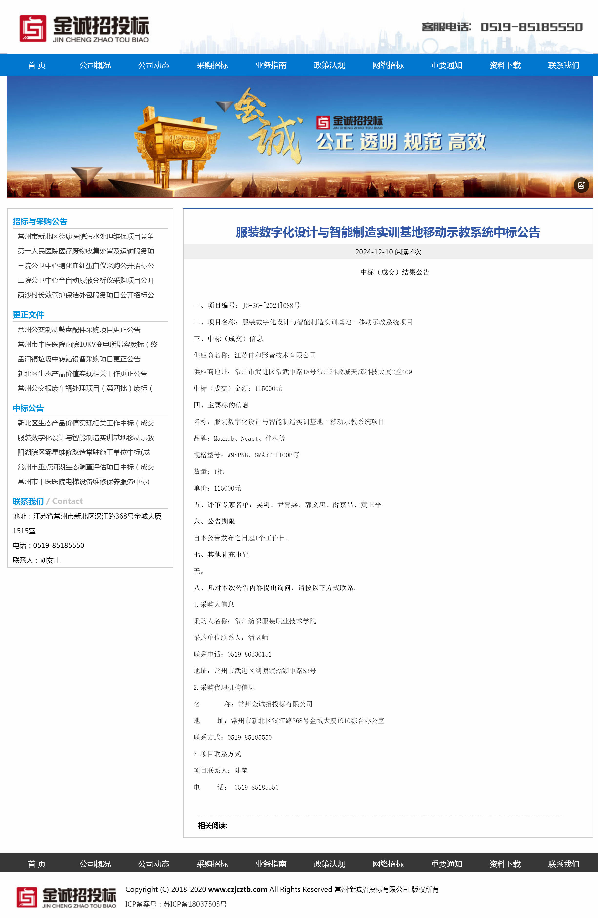 【中标公告】服装数字化设计与智能制造实训基地--移动示教系统项目中标结果公告