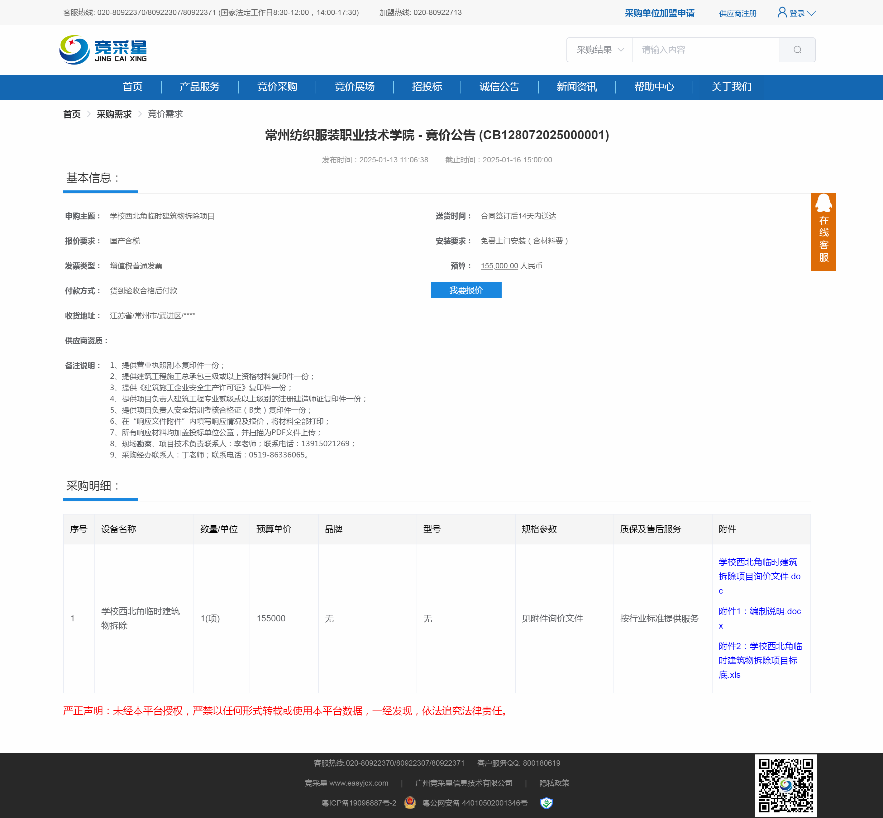 【采购公告】学校西北角临时建筑物拆除项目询价公告