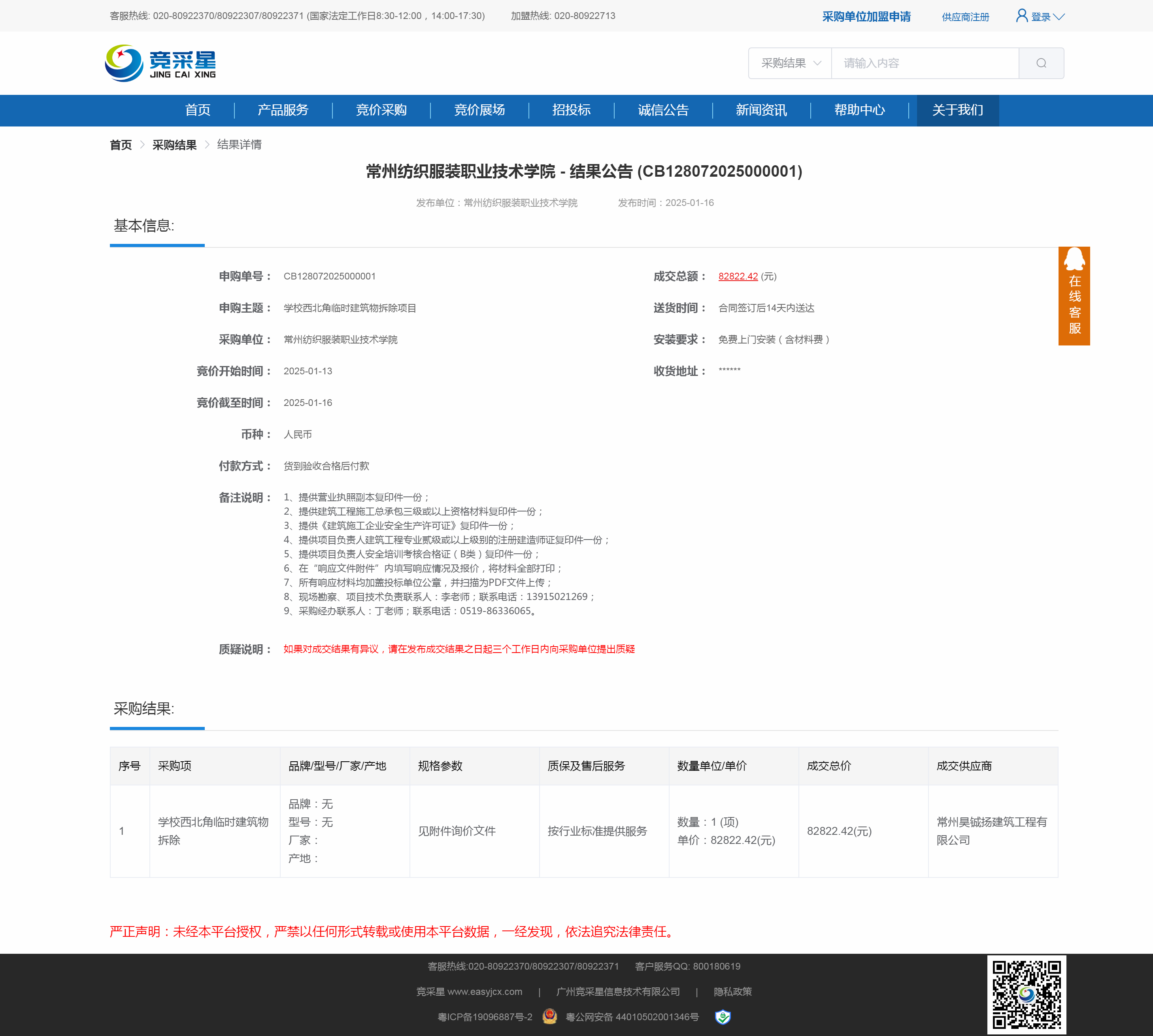 【成交公告】学校西北角临时建筑物拆除项目成交公告