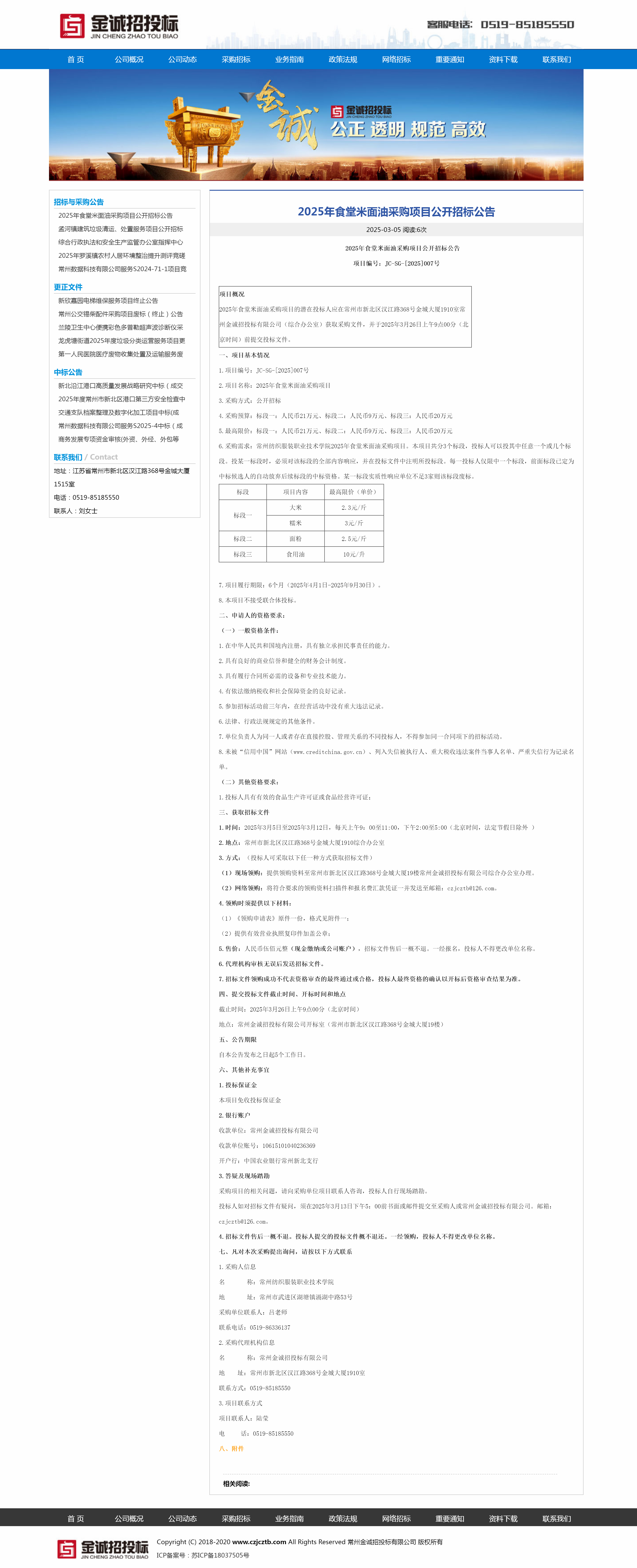 【招标公告】2025年食堂米面油采购项目公开招标公告