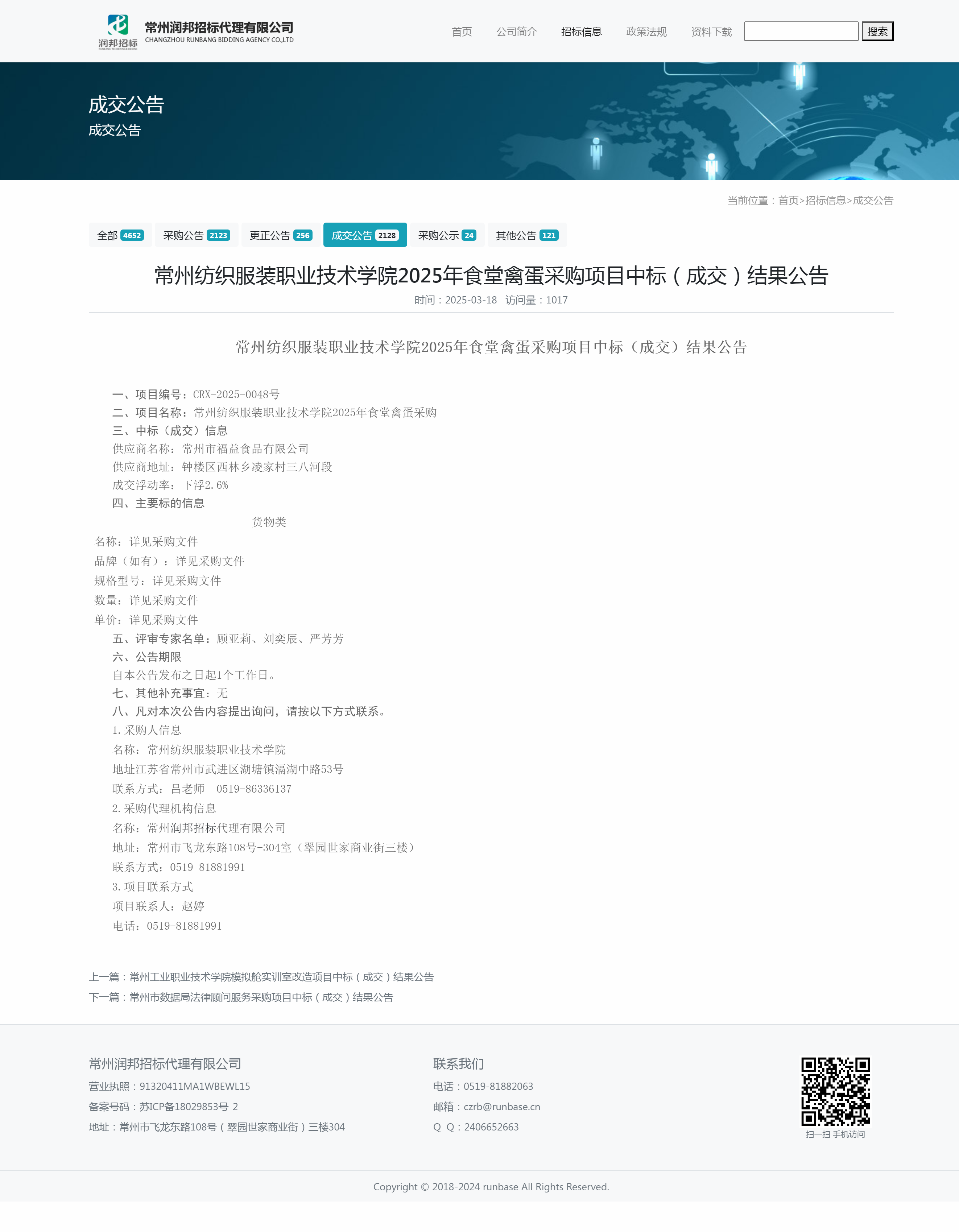 【成交公告】2025年食堂禽蛋采购项目成交结果公告
