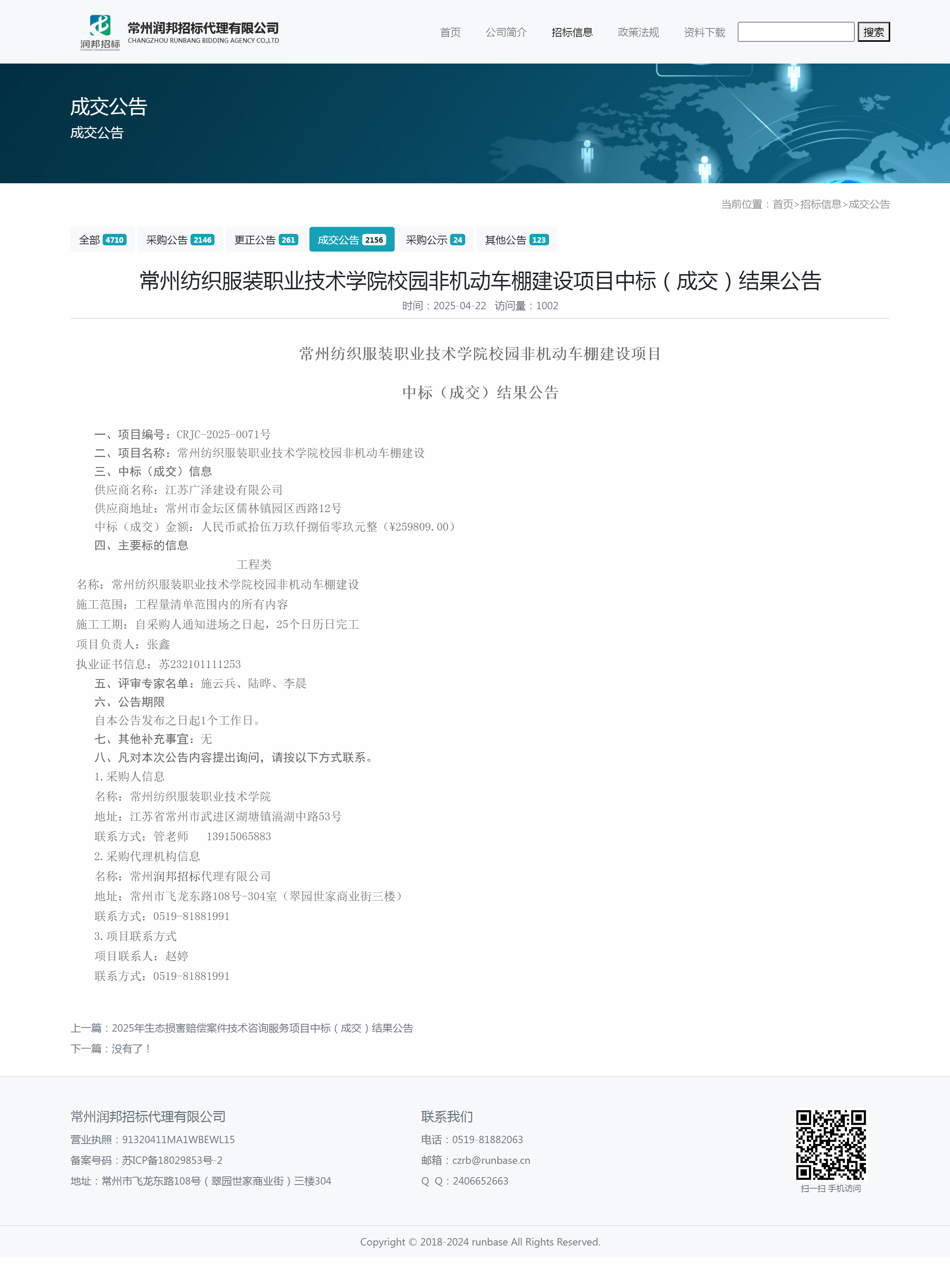 【成交公告】校园非机动车棚建设项目成交结果公告