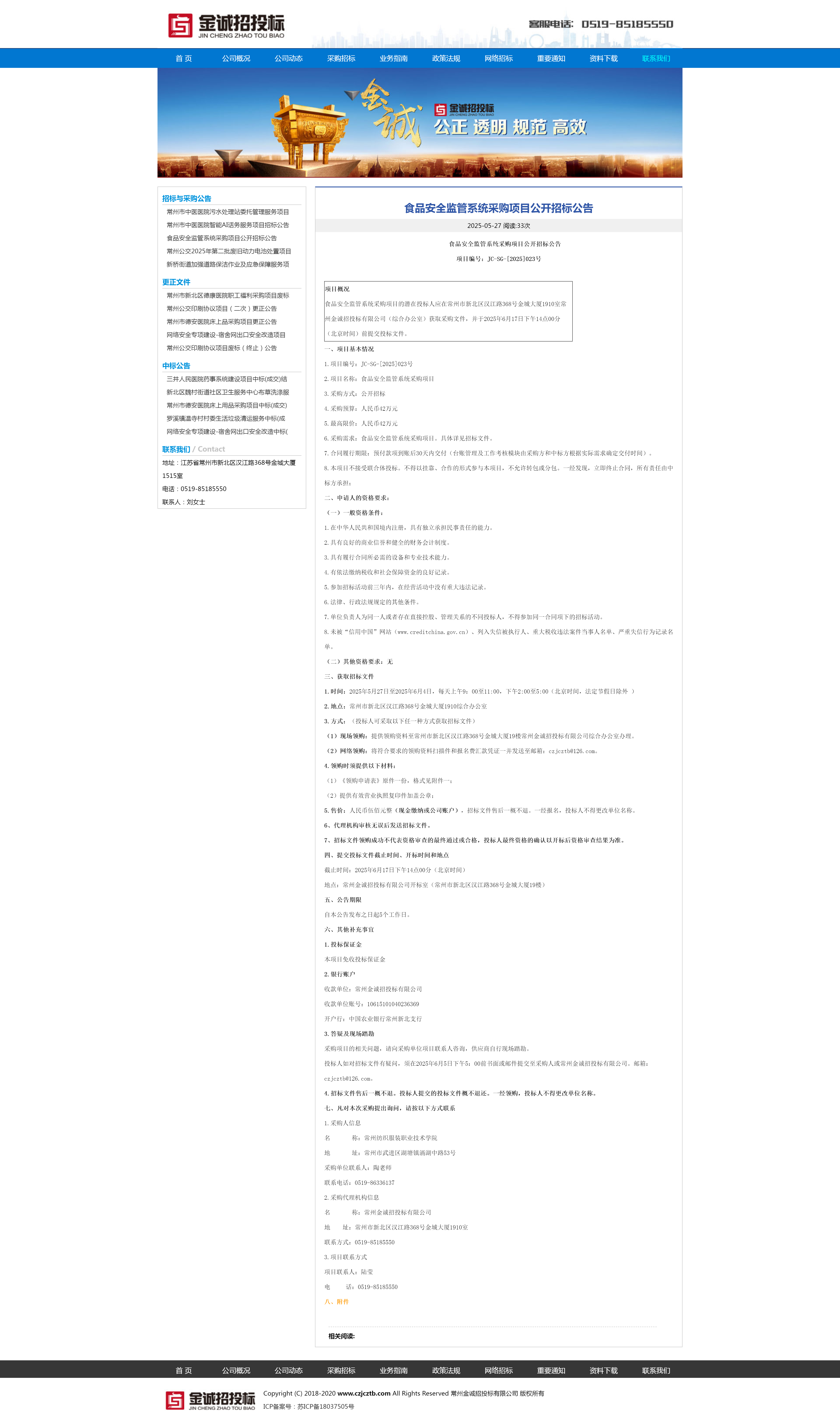 【招标公告】食品安全监管系统采购项目公开招标公告