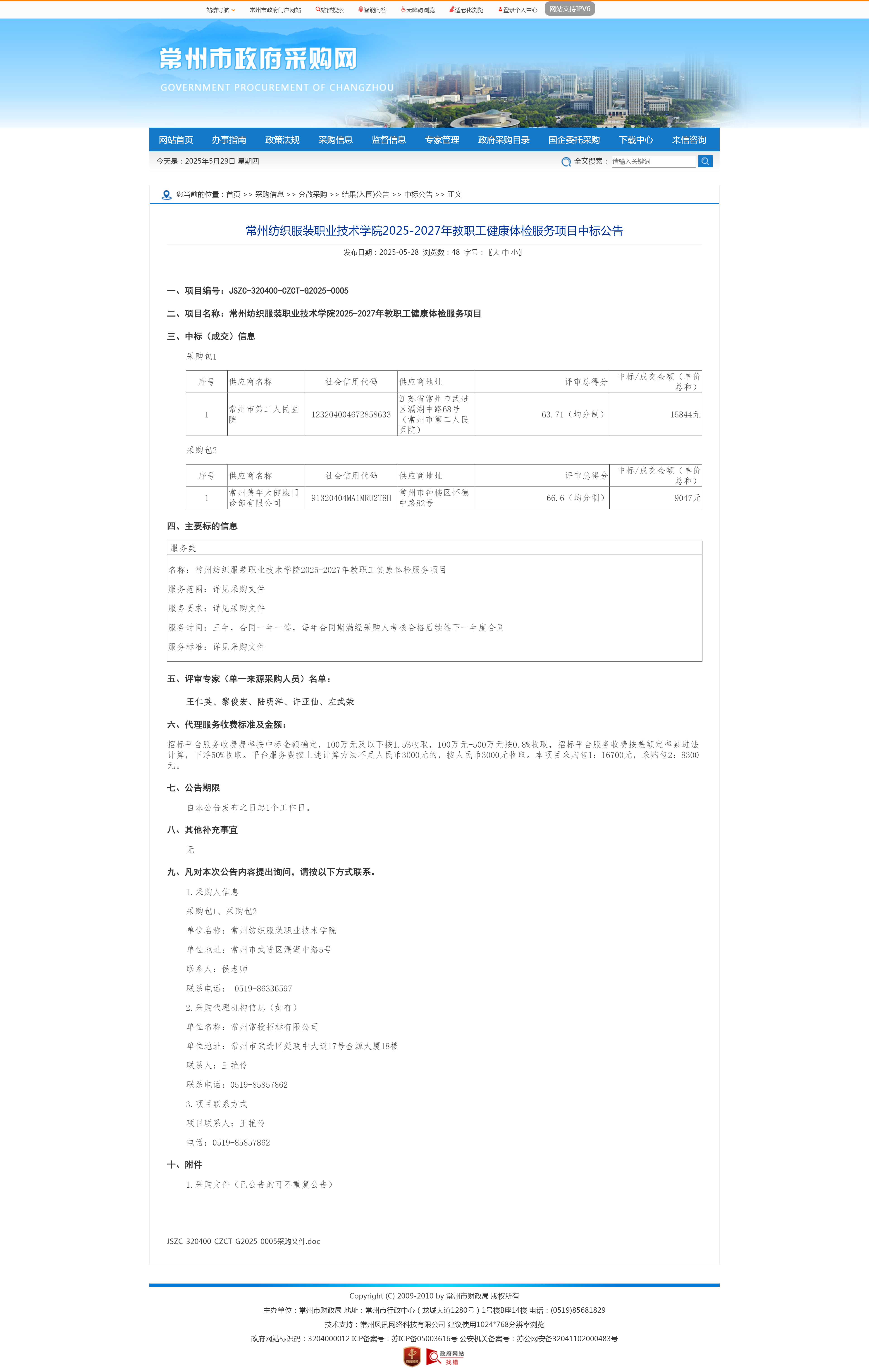【中标公告】2025-2027年教职工健康体检服务项目中标结果公告