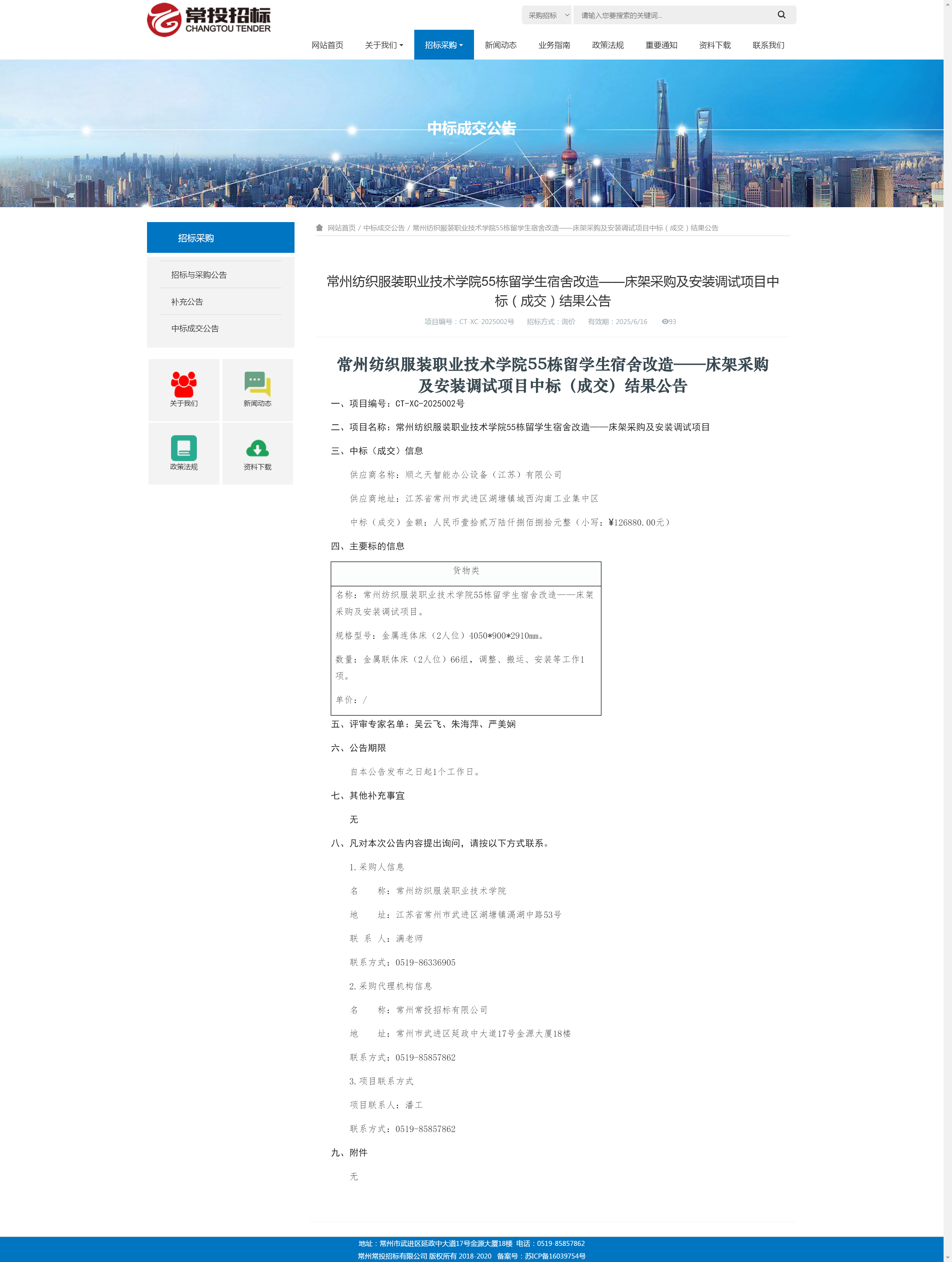 【成交公告】55栋留学生宿舍改造——床架采购及安装调试项目成交结果公告