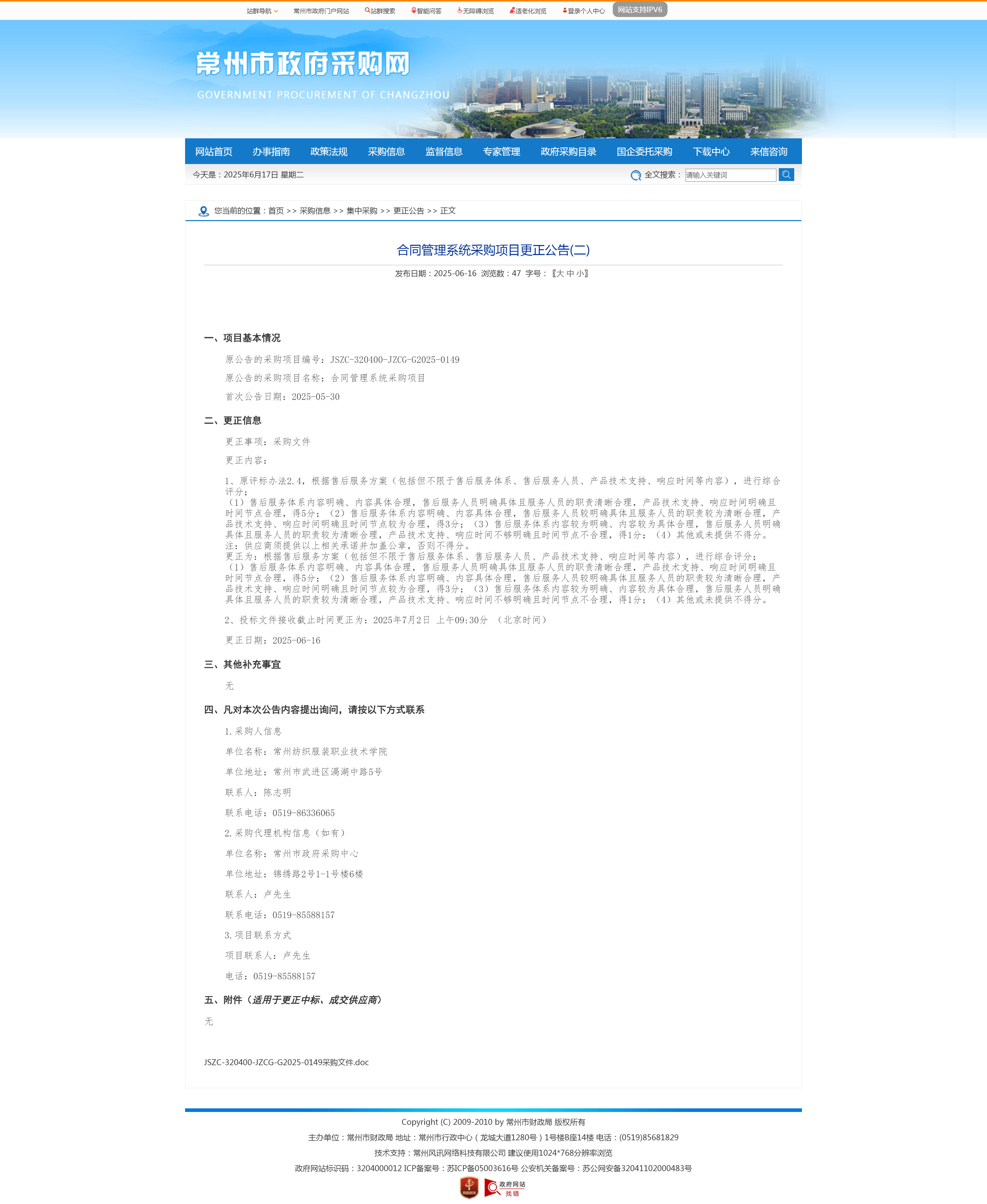 【更正公告】合同管理系统采购项目更正公告(二)