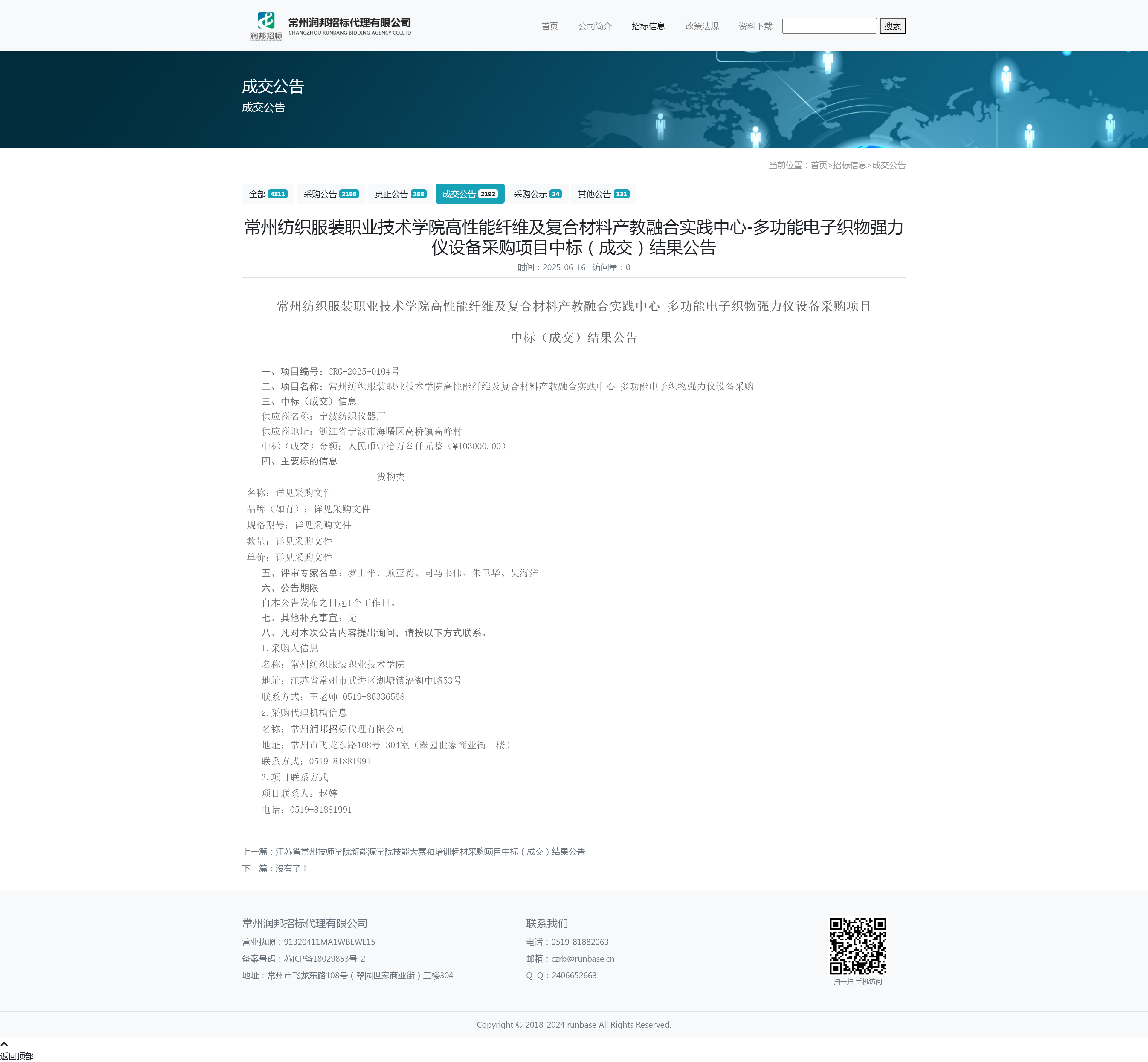 【中标公告】高性能纤维及复合材料产教融合实践中心-多功能电子织物强力仪设备采购项目中标结果公告