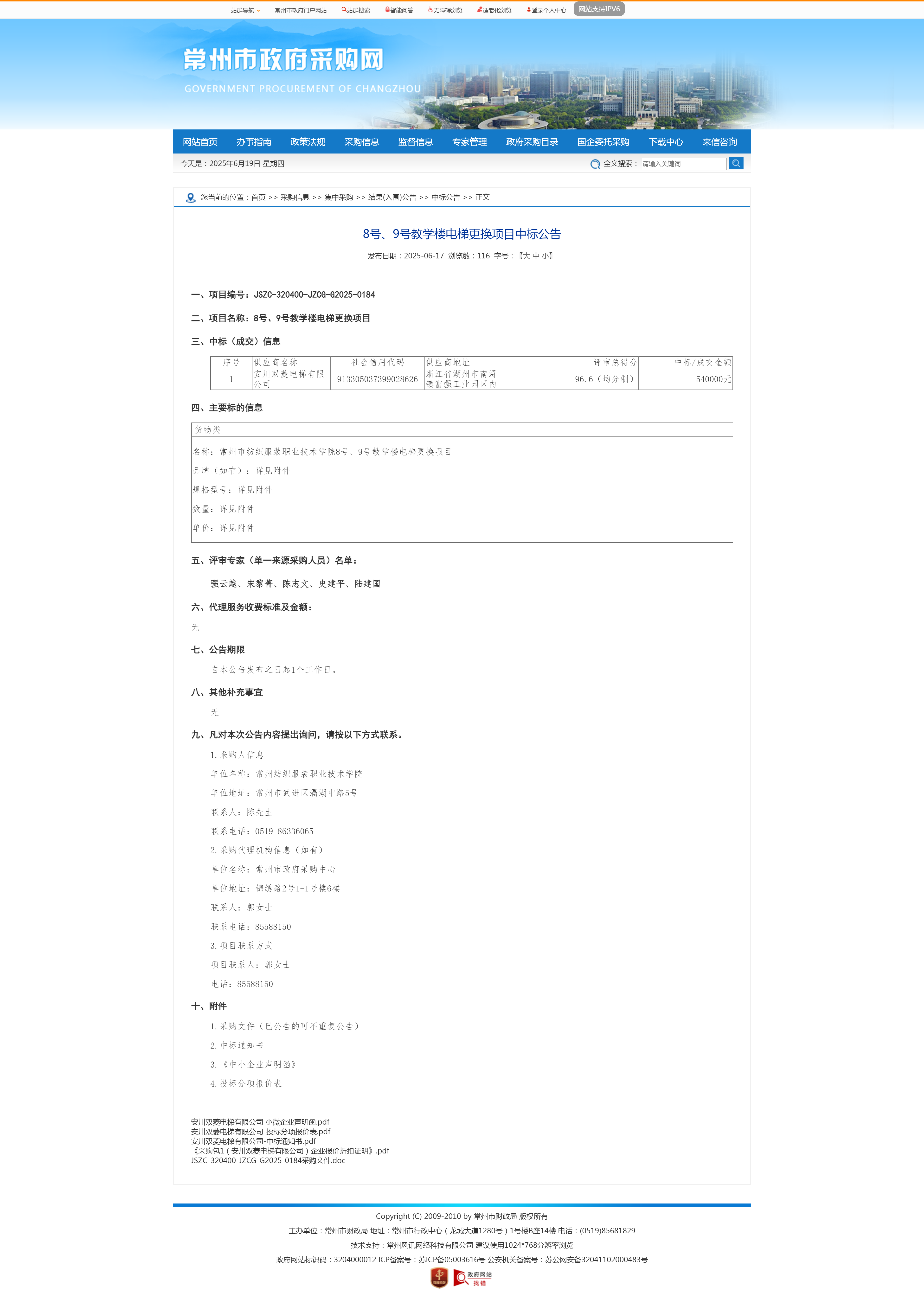 【中标公告】8号、9号教学楼电梯更换项目中标结果公告