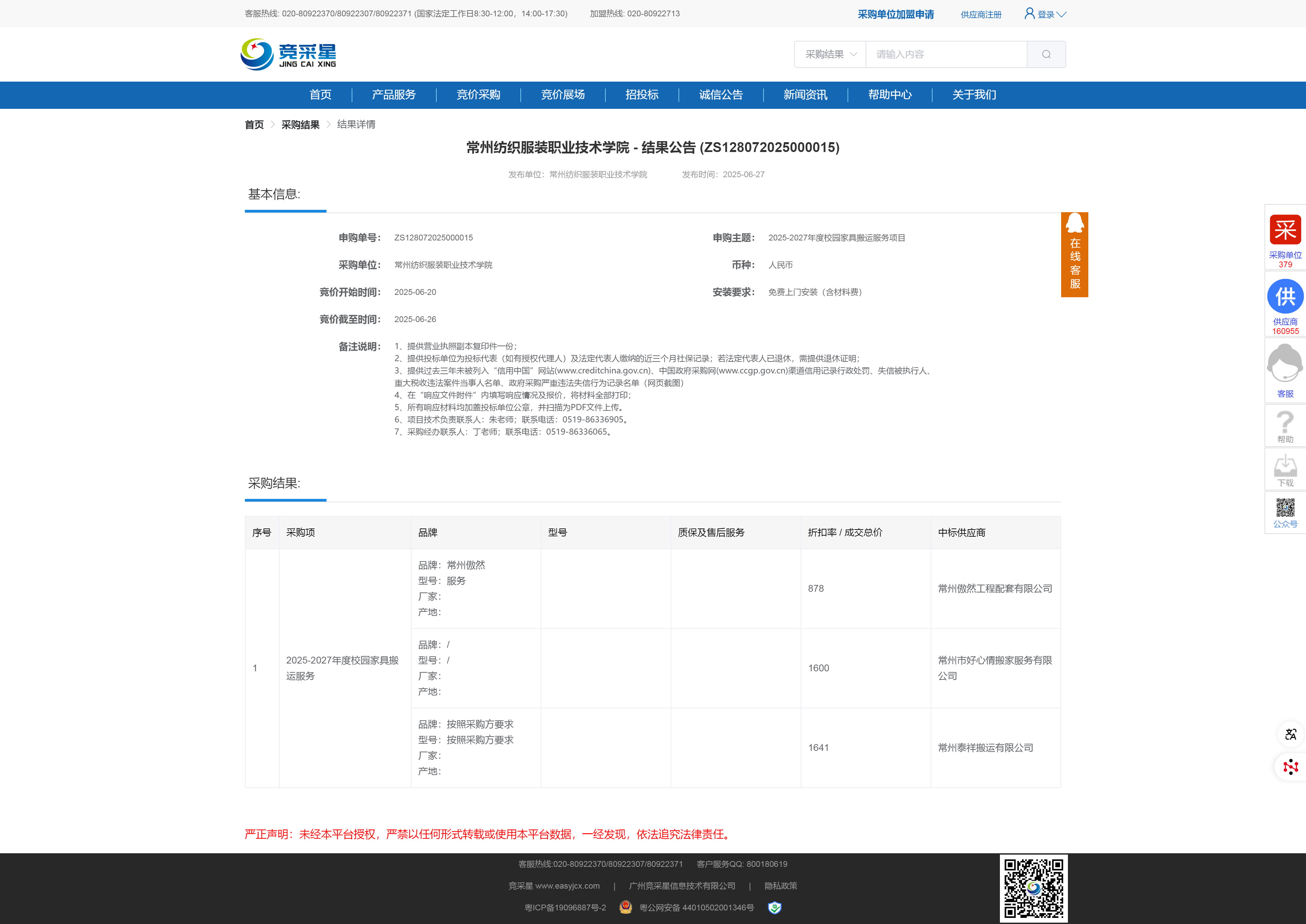 【成交公告】2025-2027年度校园家具搬运服务项目成交公告
