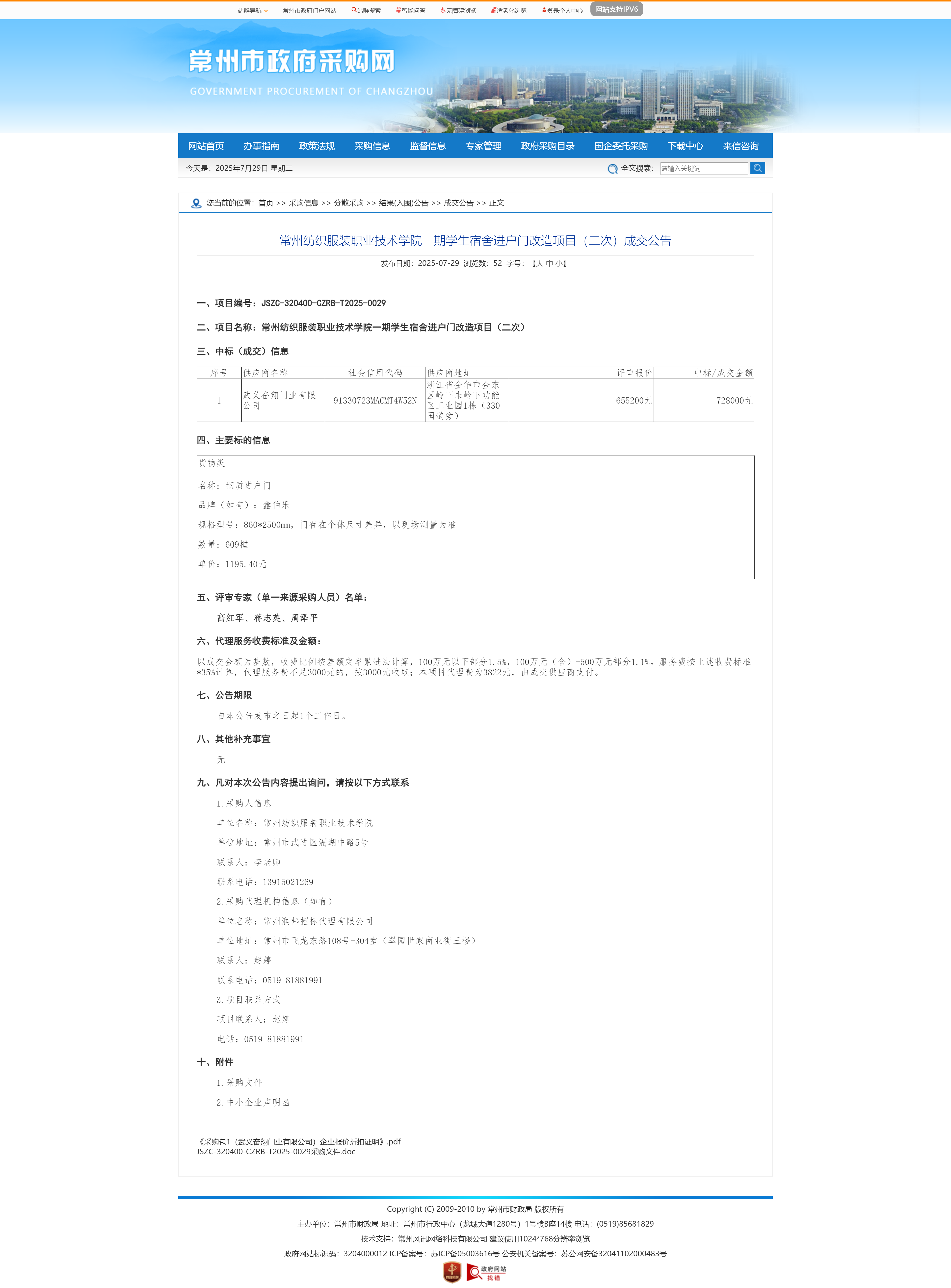 【成交公告】一期学生宿舍进户门改造项目成交结果公告