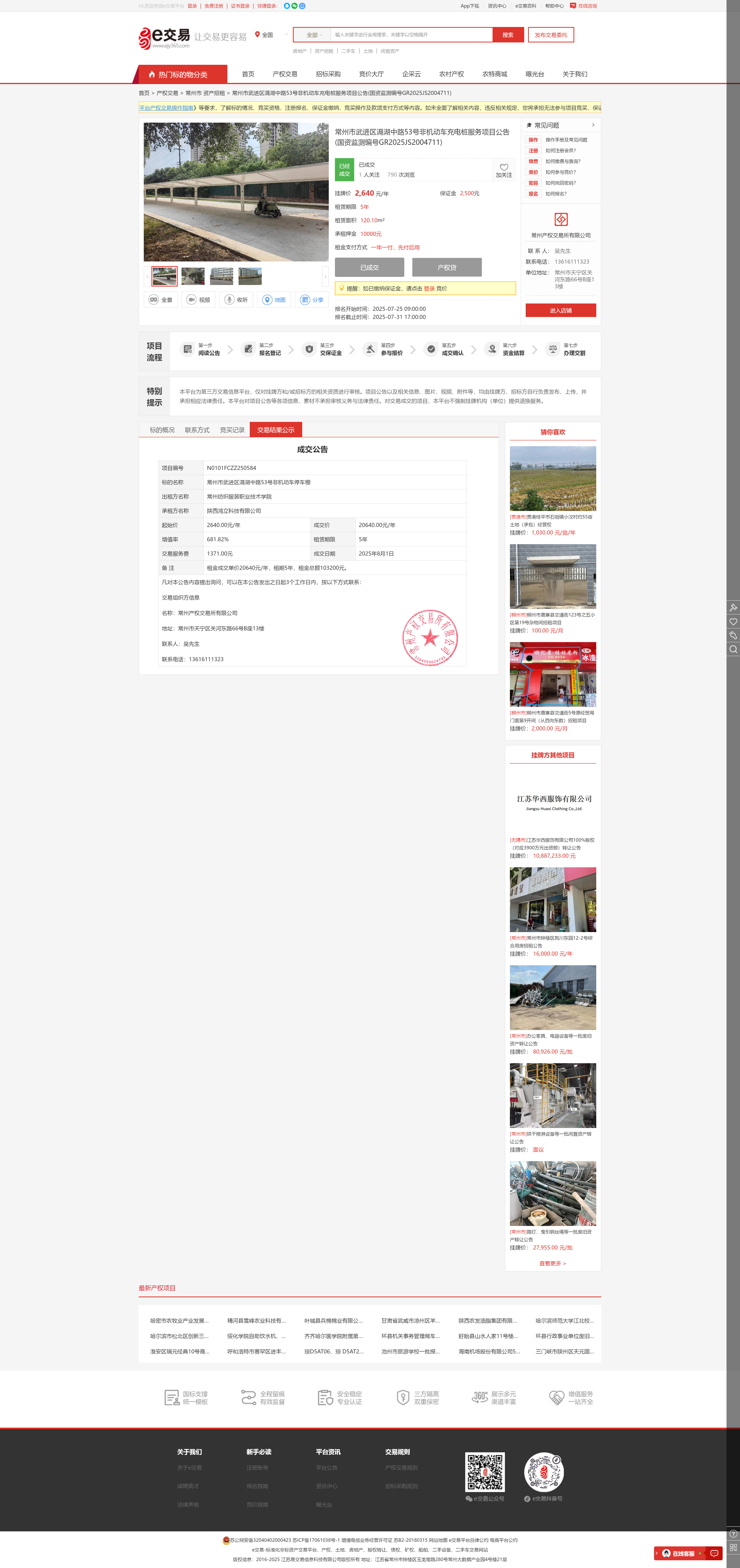 【招租结果公示】非机动车充电桩服务项目交易结果公示(国资监测编号GR2025JS2004711)