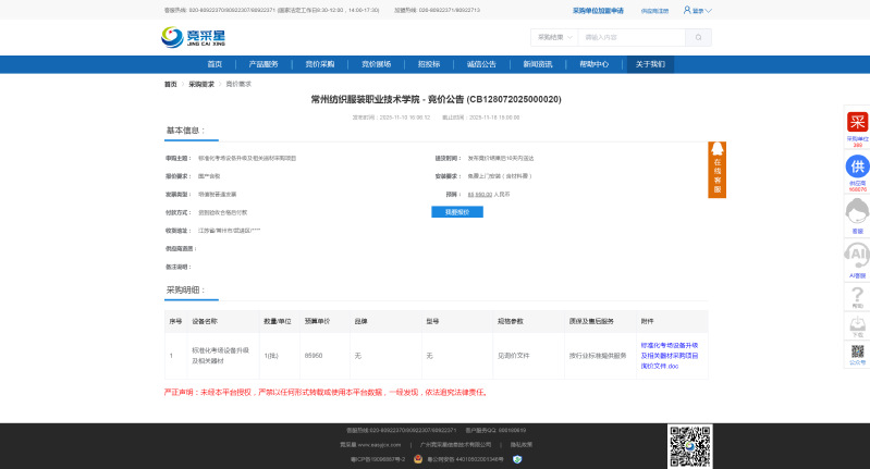 【采购公告】标准化考场设备升级及相关器材采购项目询价公告