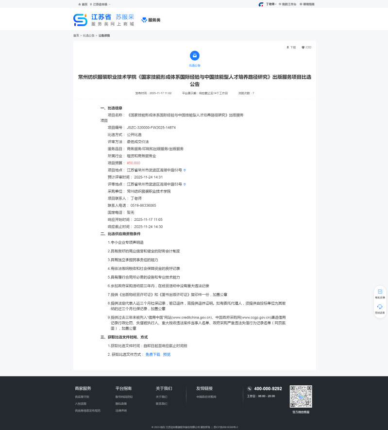 【比选公告】《国家技能形成体系国际经验与中国技能型人才培养路径研究》出版服务项目比选公告