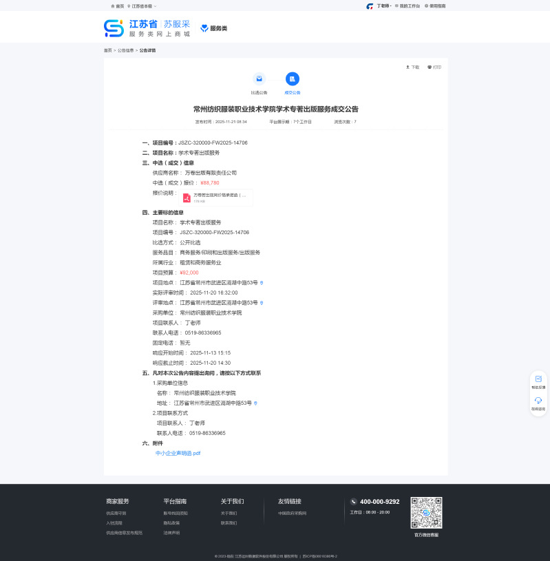 【成交公告】学术专著出版服务项目成交公告